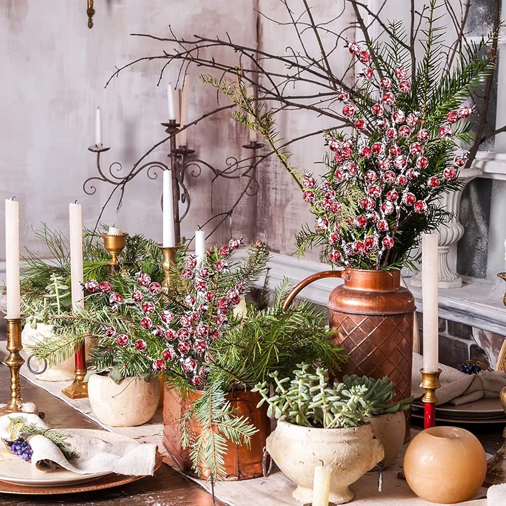 10 قطع من VALICLUD التوت الأحمر الثلجي الاصطناعي، فروع التوت الهولي المتجمد لعيد الميلاد لشجرة عيد الميلاد إكليل إكليل لوازم الحرف اليدوية قطعة مركزية للطاولة ديكورات المنزل