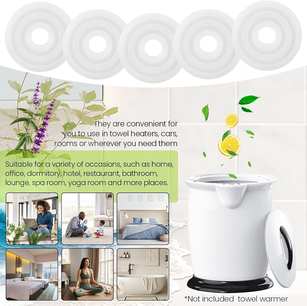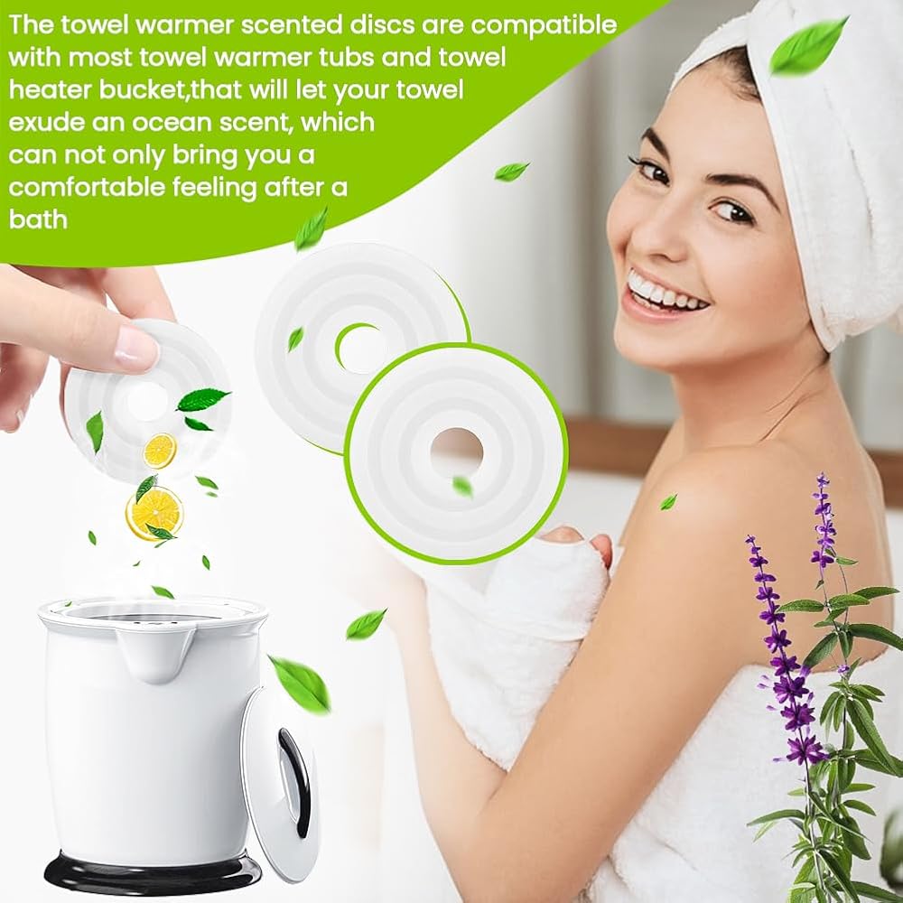 【FOR FRESH AIR】The towel warmer scented discs are compatible with most towel warmer tubs and towel heater bucket,that will let your towel exude an ocean scent, which can not only bring you a comfortable feeling after a bath, but also fill your room with a fresh and pleasant smell, good partners of towel warmers.