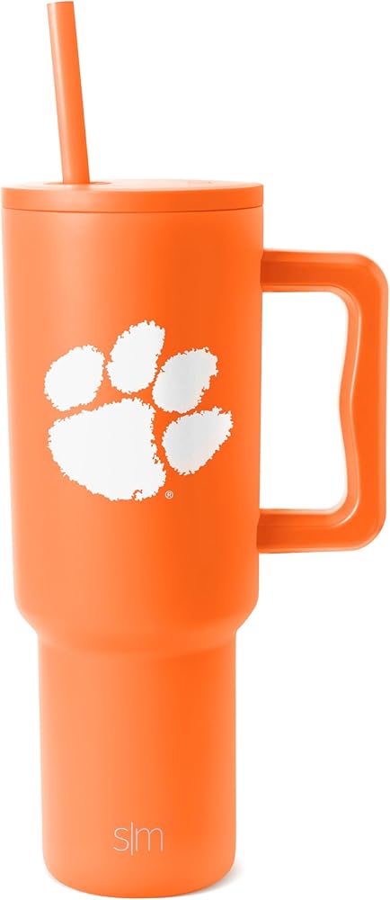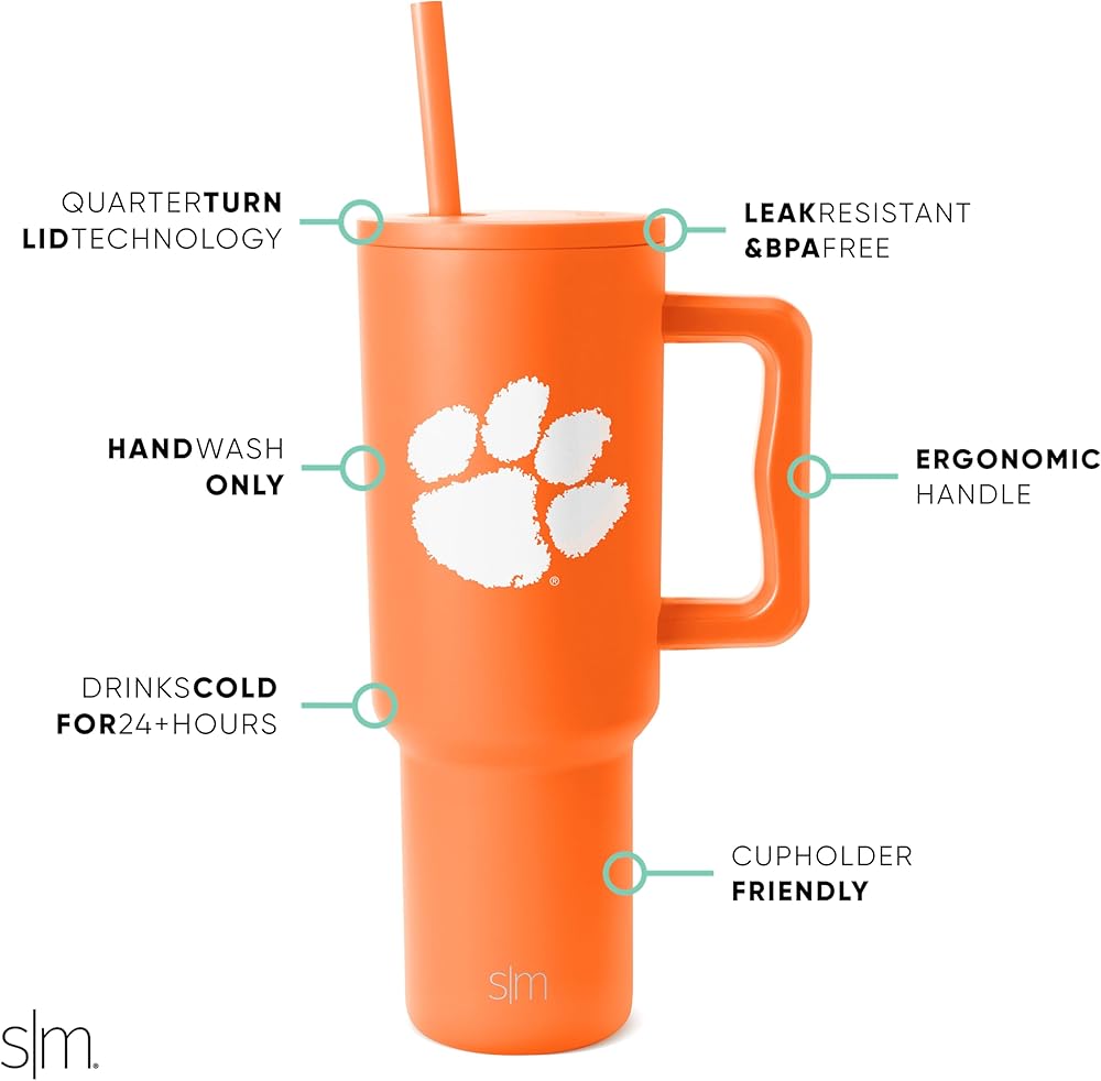 The Simple Modern Officially Licensed Collegiate football Trek Tumbler is double walled and vacuum insulated to keep your drink hot or cold for hours. The cup is outfitted with an ergonomic handle, that is aesthetically designed for comfort. It comes with a straw lid and two straws so you can enjoy your favorite beverage on the go. The straw lid is four-way threaded to allow four different straw placements for your drinking hand preference. The Trek is made from 18/8 stainless steel and fits standard cupholders, and with a variety of color options, you can get an Emotional Support Water Bottle for whatever outfit or activity the day entails -- Take Us With You.