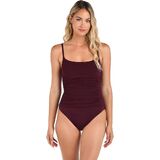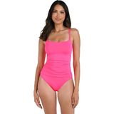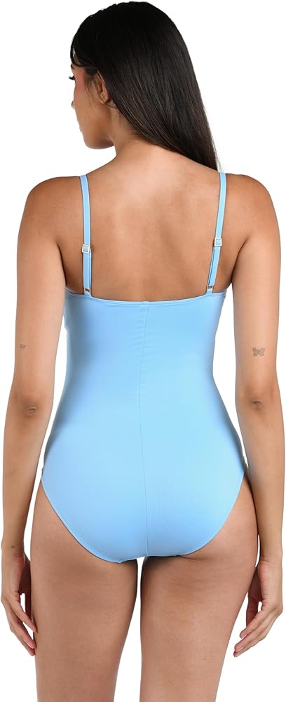 Sunbathe seaside in this lingerie one-piece swimsuit by La Blanca. The delicate and simple lingerie shape exudes a simple, feminine style. Adjustable straps and removable cups allow this piece to fit to you. Slimming fabric finishes the smooth, delicate look. Moderate rear coverage.