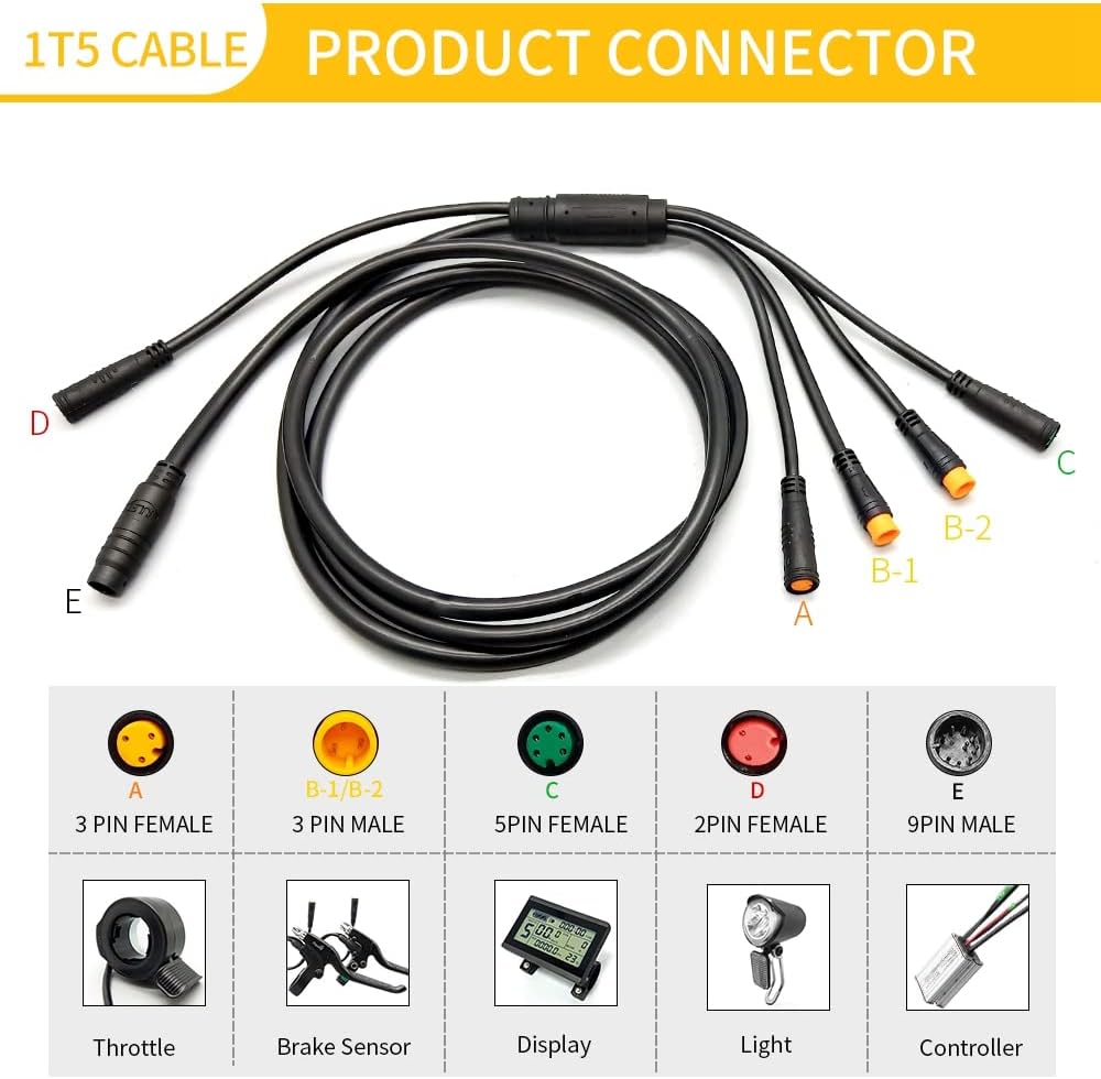 1T5 التكامل كابل مقاوم للماء سلك تمديد ل KT دراجة كهربائية E-الدراجة تحكم ضوء E-الفرامل الاستشعار خنق عرض تحويل الملحقات
