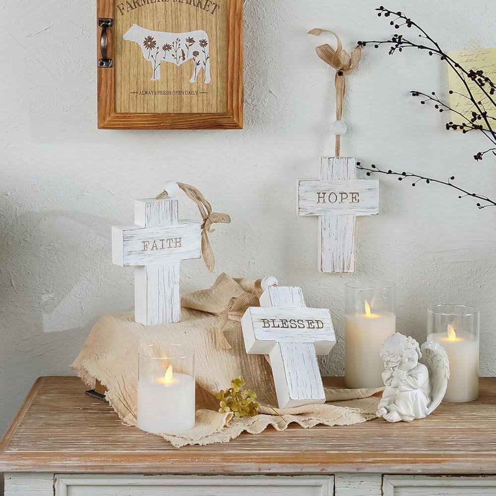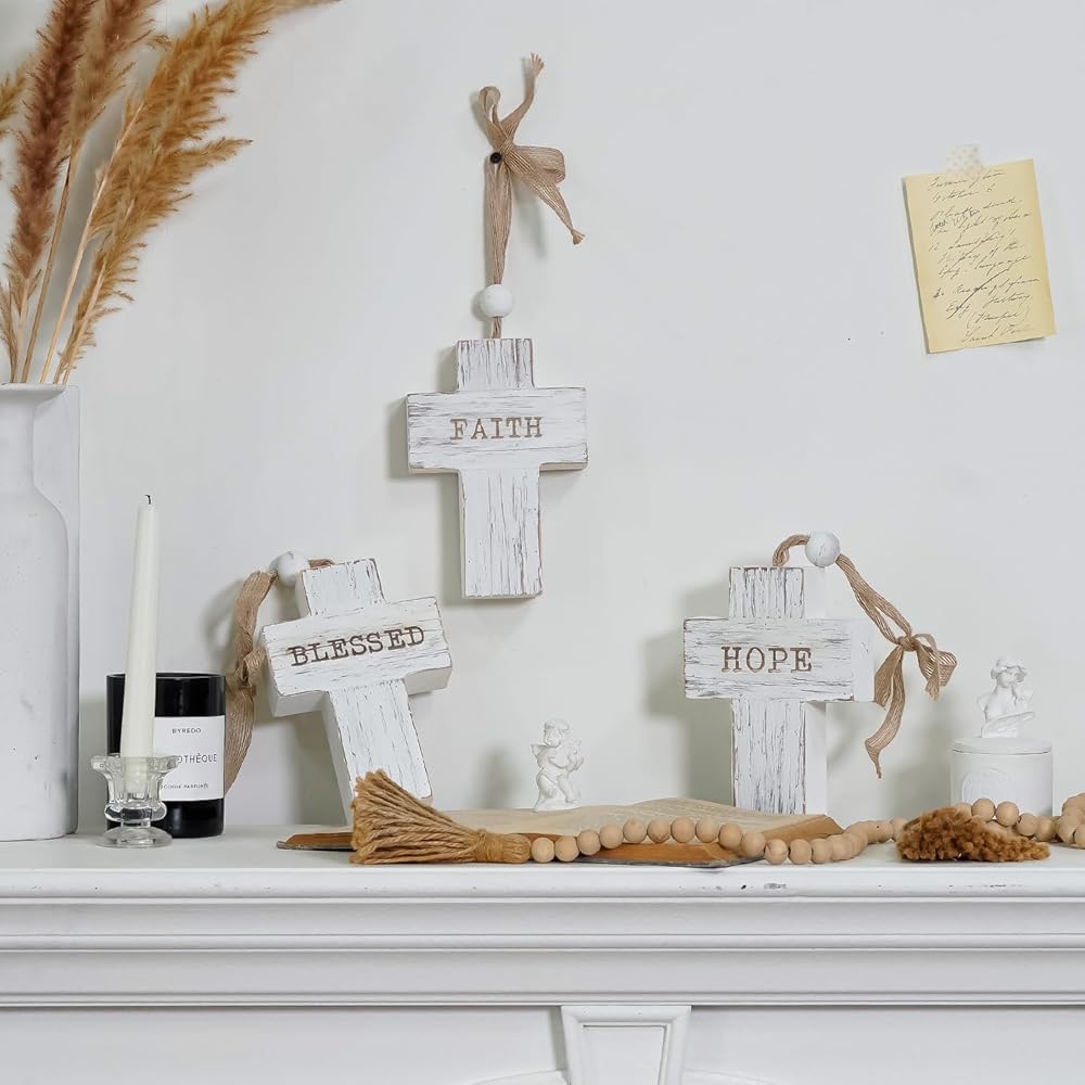 • ديكور ملهم - يتميز كل صليب في المجموعة بكلمة راقية - "مبارك" و"الأمل" و"الإيمان" - مما يضيف لمسة ذات معنى لمنزلك.