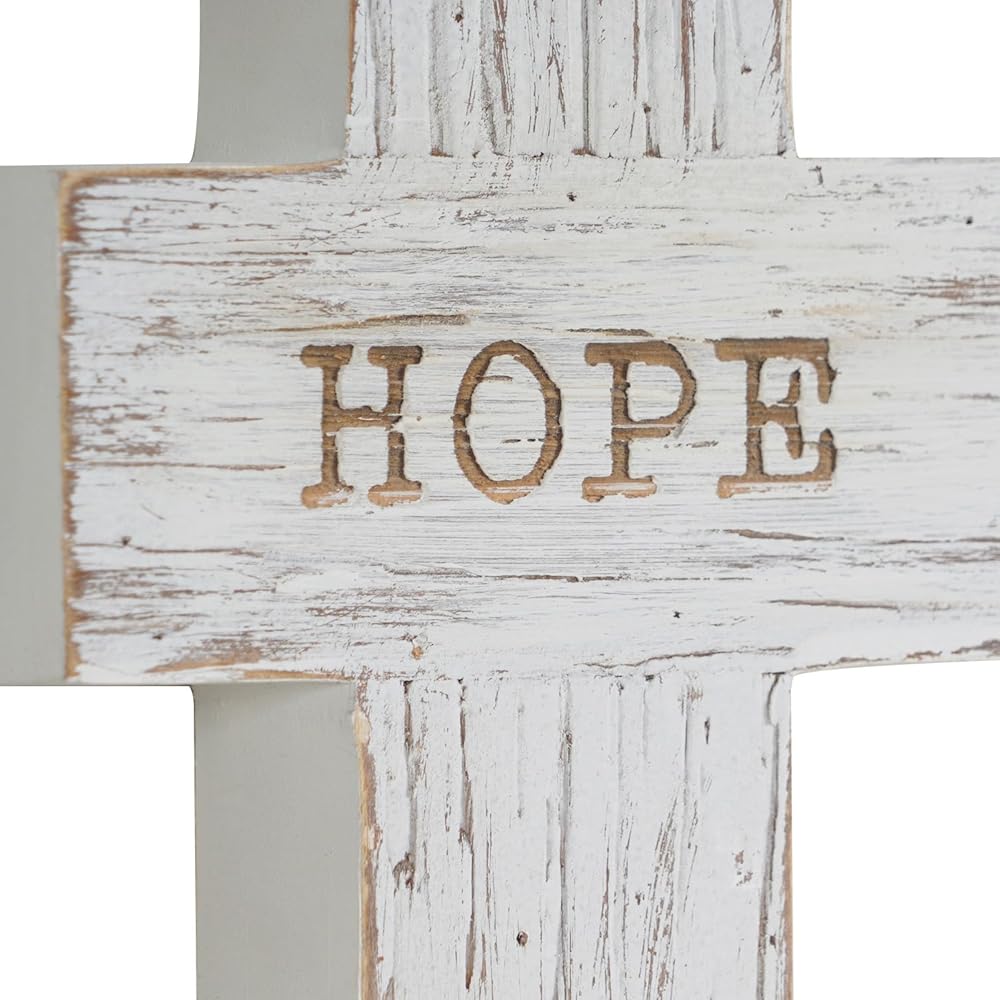 مجموعة من 3 قطع من NIKKY HOME Crucifix Wall Cross Blessed Hope Faith، مصنوعة يدويًا فريدة من نوعها من الخشب الريفي الكاثوليكي والفن الروحي الكاثوليكي لتزيين غرفة المنزل - أبيض متعثر