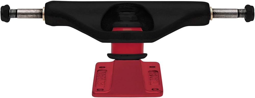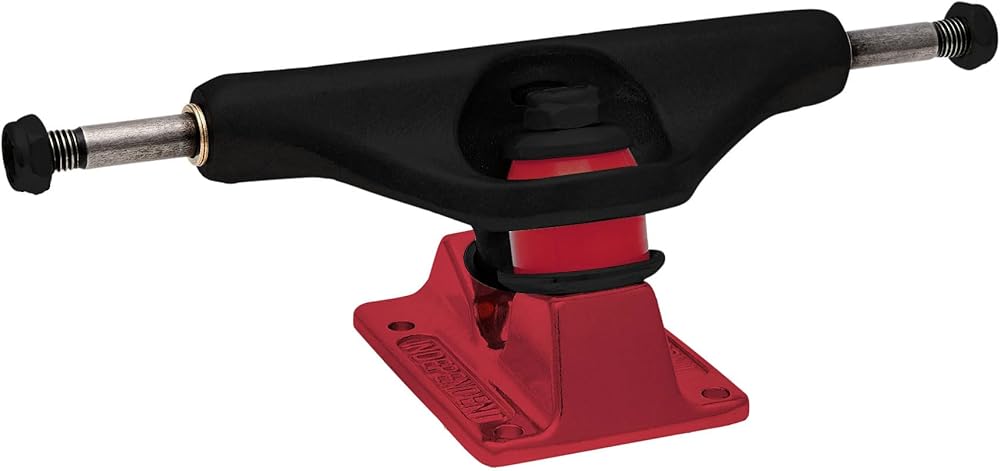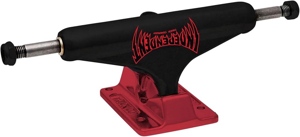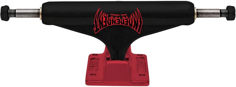 Independent Trucks Stage 11 Forged Hollow Voltage Span featuring flat black powder coated hanger, anodized red baseplate, red cushions, and black nuts with pad printed Voltage Span logo art. Super lightweight, mid-profile truck with forged baseplate and hollow axle & kingpin. 10% lighter than Stage XI. 53.5mm tall for optimal performance and wheel clearance with wheels 54mm and under. A356 T6 Aluminum Hanger; The best lightweight aluminum alloy heat treated to T6 condition for strength, durability, and grind feel. Forged 6061 Aluminum Baseplate; Aircraft grade forged aluminum allows a thinner part while still maintaining high density and strength. Hollow Chromoly Axle & Kingpin; Highest quality hollow Chromoly steel for durability and weight saving.