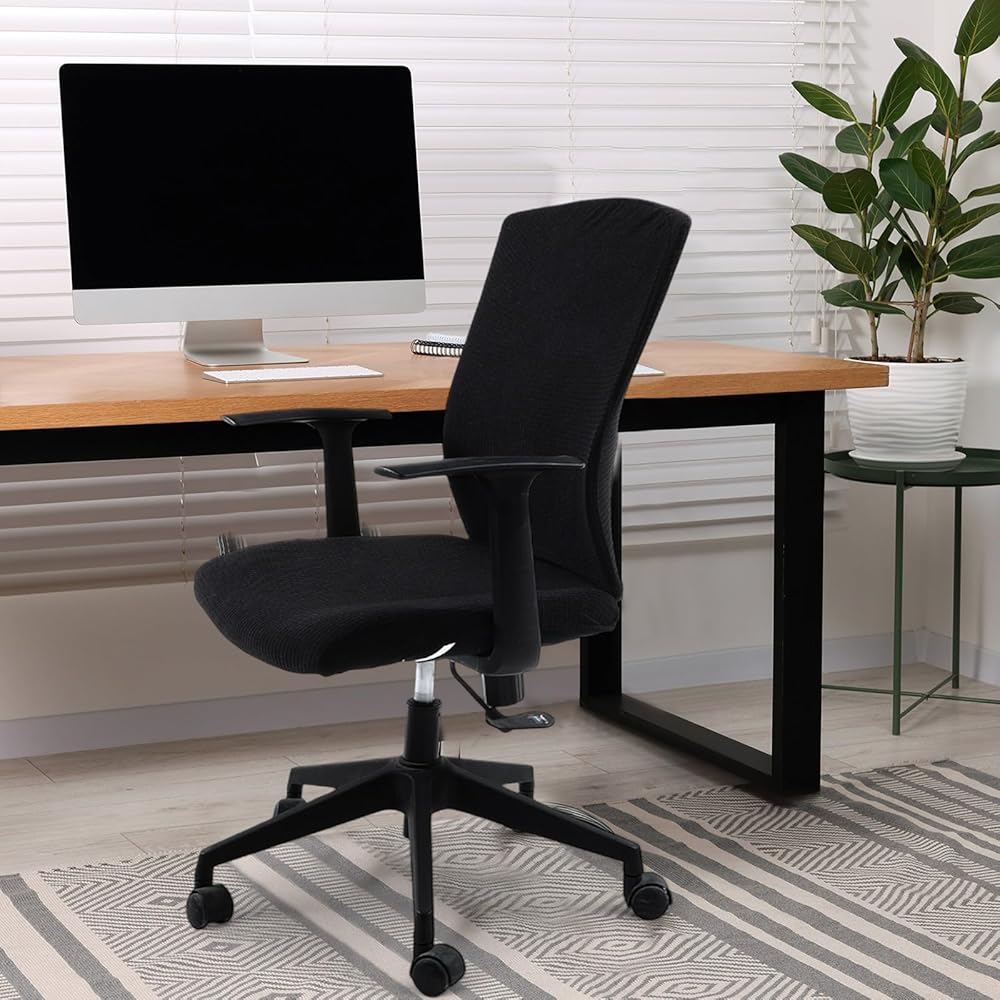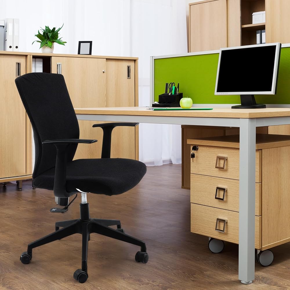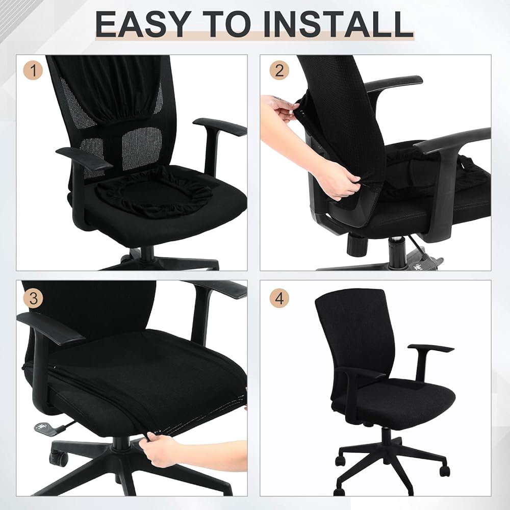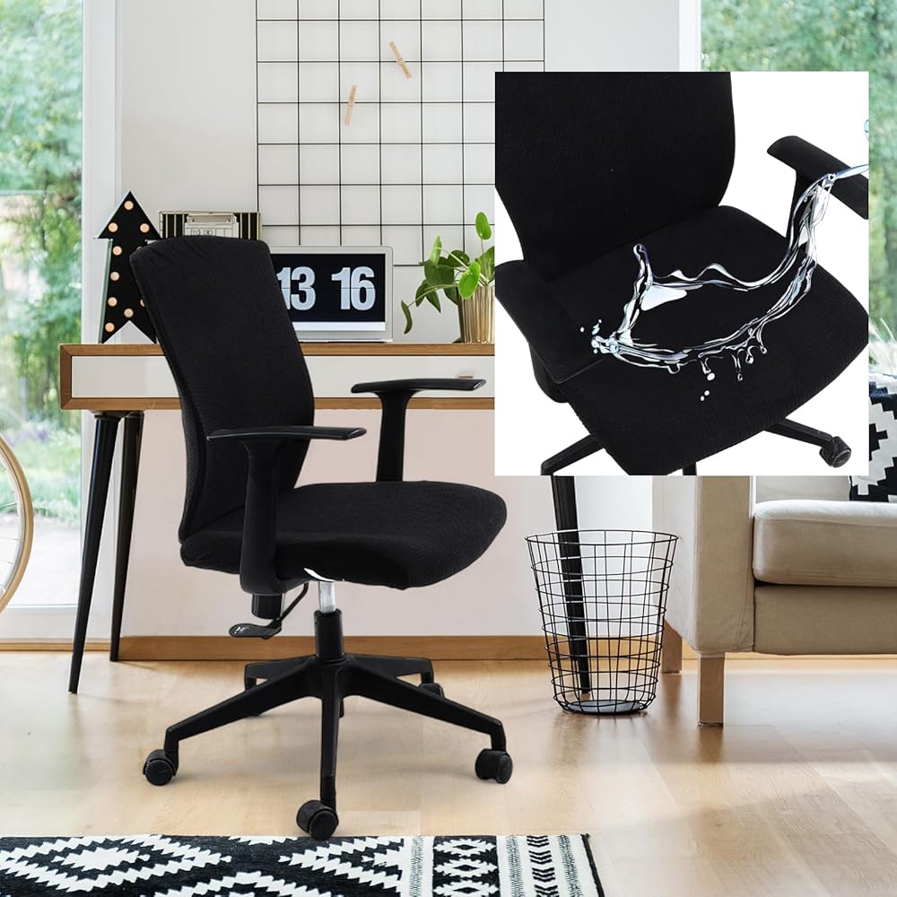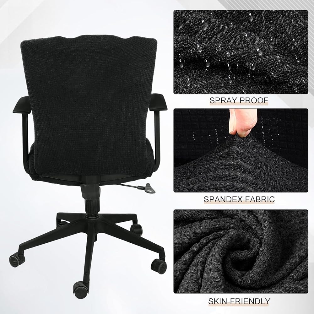 In black color, this office chair cover seamlessly blends with various room decor styles. The stain resistant color ensures easy maintenance and a clean appearance, making it a practical addition to your daily routine without worrying about frequent cleaning.