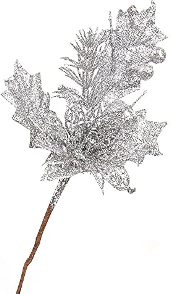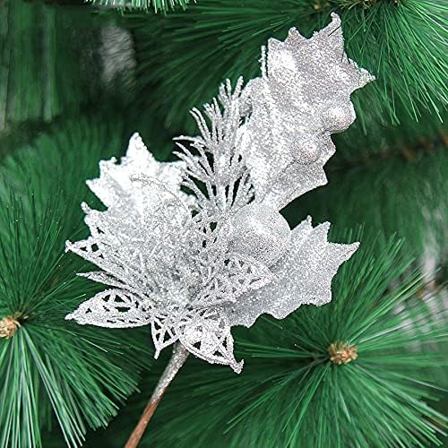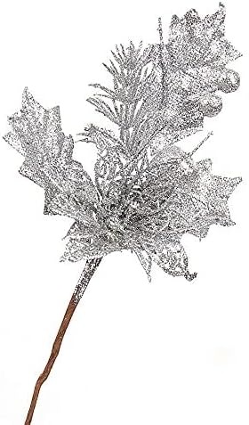 5 قطع من سيقان التوت اللامعة من Giga Gud، 9 بوصات من اختيارات عيد الميلاد الاصطناعية لزينة شجرة عيد الميلاد، إكليل عيد الميلاد DIY، والحرف اليدوية، والعطلات وديكور المنزل (5 قطع فضية)