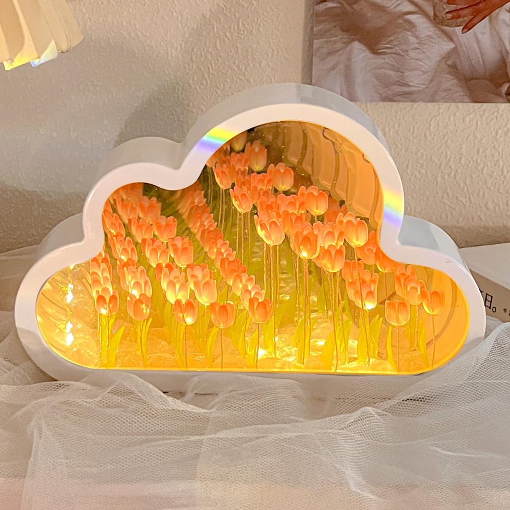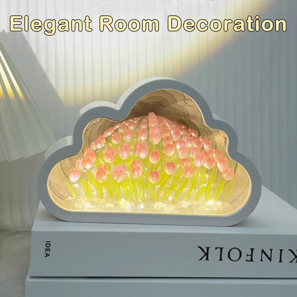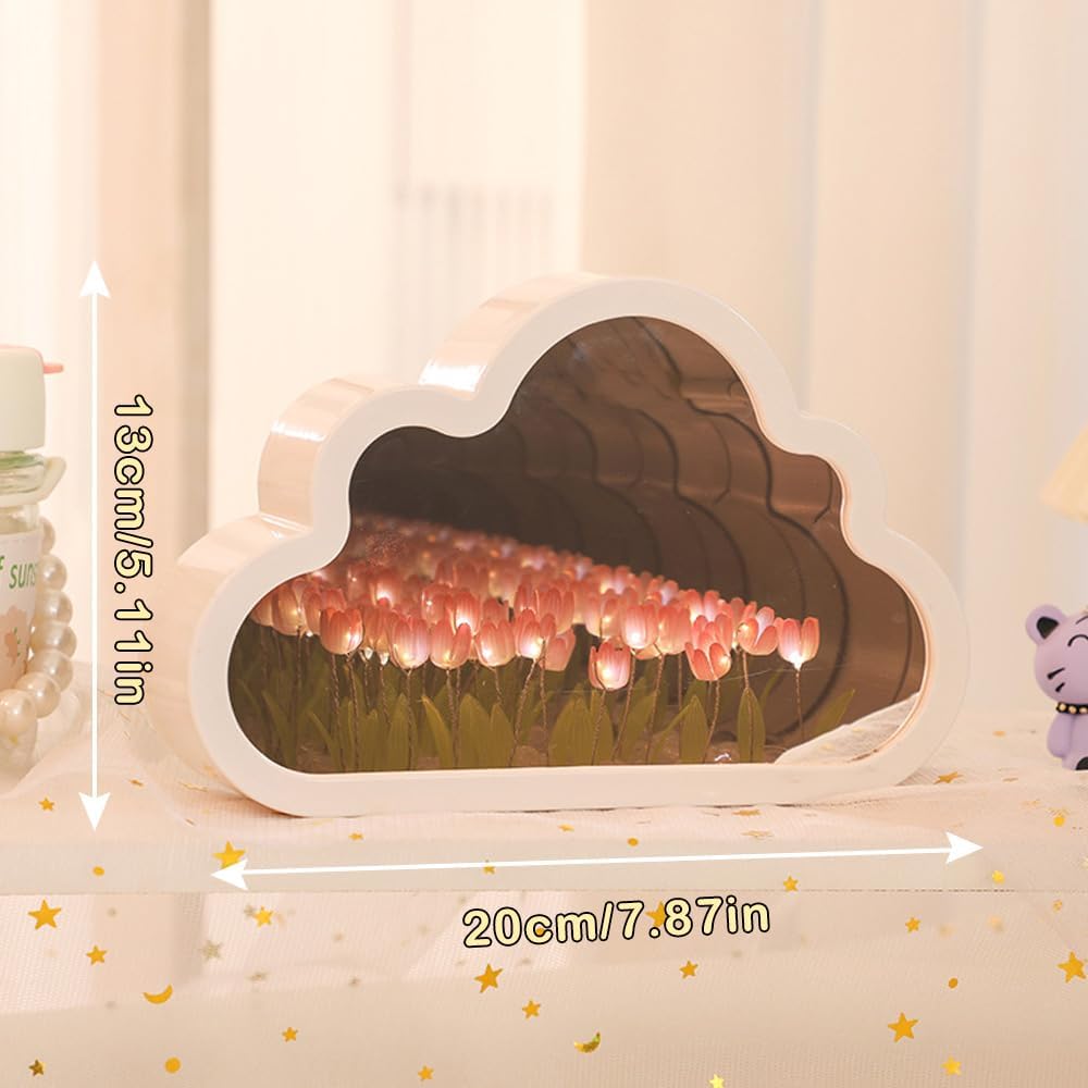 مصباح مرآة سحابة توليب وردي من Crtivetoys، مصباح طاولة على شكل زهرة لديكور مكتب غرفة النوم، محاكاة إضاءة ليلية على شكل زهرة LED للأصدقاء والعائلة والزوجة والأم والأخت