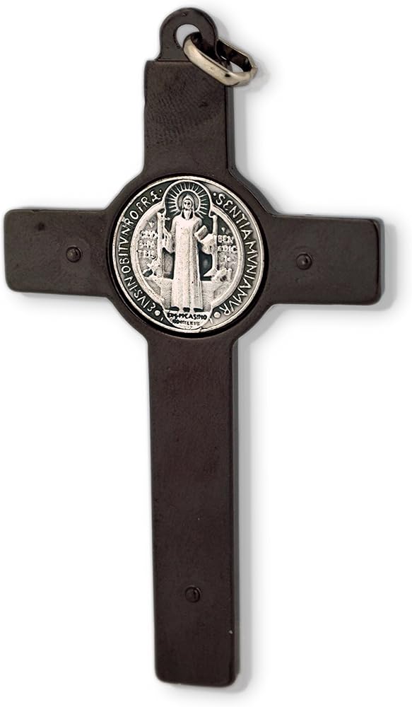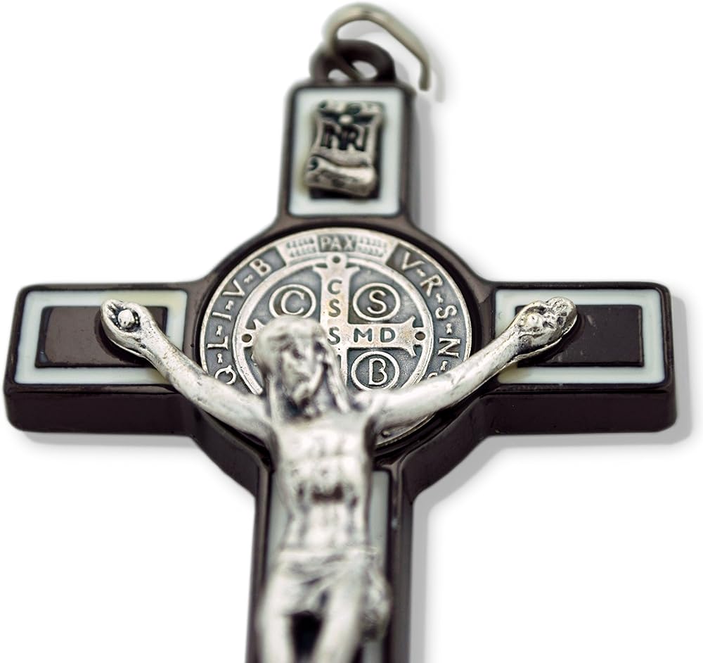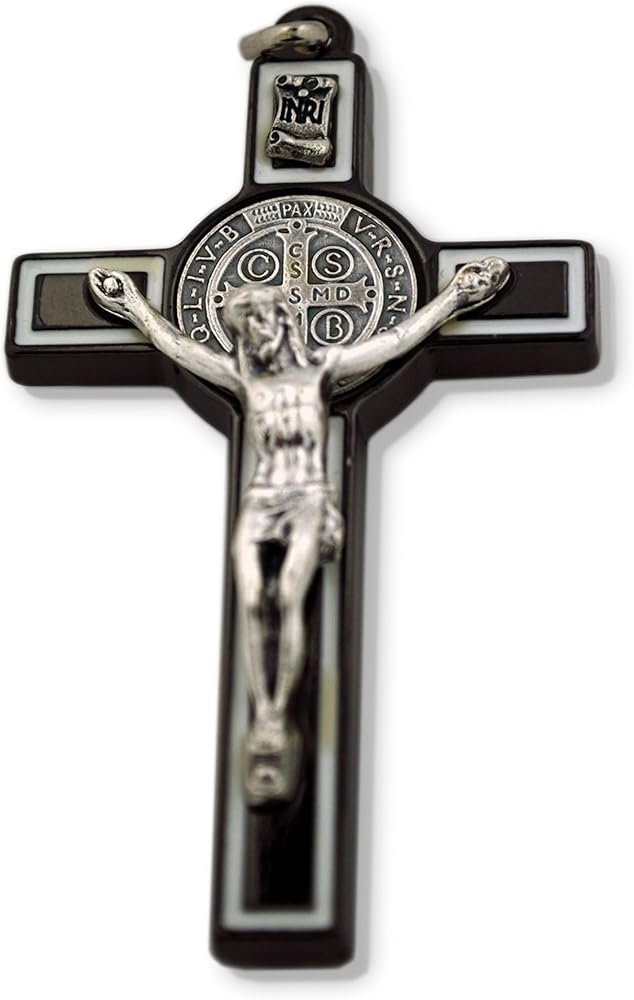 These St. Benedict Crucifixes are the perfect gift for men! Made in Italy, available in six beautiful color options! Comes with a booklet explaining the St. Benedict medal. Also makes a great gift for First Communion and Confirmation! The Saint Benedict Crucifix is a distinctive and symbolic religious item associated with the Benedictine order and widely used in Catholic traditions. Here's an overview: Key Features: Design: The Saint Benedict Crucifix is characterized by the inclusion of the Saint Benedict medal, typically embedded at the intersection of the cross. The medal bears specific symbols and inscriptions associated with the saint. Saint Benedict Medal: The centerpiece of the crucifix features the Saint Benedict medal, which carries powerful symbols, including a cross, the image of Saint Benedict, and Latin inscriptions invoking protection and exorcism. Cross Shape: The crucifix follows the traditional Christian cross shape, representing the crucifixion of Jesus Christ. The addition of the Saint Benedict medal distinguishes it from other crucifix designs. Material: Saint Benedict Crucifixes are crafted from various materials, including wood, metal, or even precious metals. The choice of material often depends on personal preferences and the intended use of the crucifix. Protection and Exorcism: The Saint Benedict medal on the crucifix is renowned for its protective qualities. Believers often use the crucifix as a source of spiritual protection and to invoke the saint's intercession against evil. Popular Devotion: Devotion to the Saint Benedict Crucifix is widespread among Catholics, particularly those with a connection to the Benedictine order. It is commonly used in homes, churches, and as a personal item for prayer and protection. Variations: Saint Benedict Crucifixes come in various sizes and styles. Some may include additional artistic elements, while others maintain a more traditional and straightforward design. Catholic Tradition: The crucifix is an essential symbol in Catholicism, serving as a reminder of Jesus' sacrifice for humanity. The inclusion of the Saint Benedict medal adds layers of meaning and protection to this particular crucifix. Personal and Gift Use: Many individuals use the Saint Benedict Crucifix for personal prayer, meditation, and as a visible expression of their faith. It is also a popular choice for religious gifts, especially during milestones such as confirmations, baptisms, or house blessings. Benedictine Spirituality: The crucifix is closely tied to Benedictine spirituality, emphasizing principles such as humility, obedience, and prayer. It is a tangible representation of the Benedictine way of life. The Saint Benedict Crucifix holds a special place in Catholic devotional practices, combining the traditional symbolism of the cross with the protective and spiritual elements associated with the Saint Benedict medal.