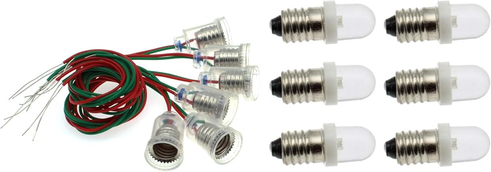 E10 برغي لمبات حامل قاعدة المصباح FDXGYH 6 قطع 3 فولت أضواء بيضاء باردة و6 قطع مقبس لمبة مع سلك للتجربة الإلكترونية أو تزيين الإضاءة بنفسك