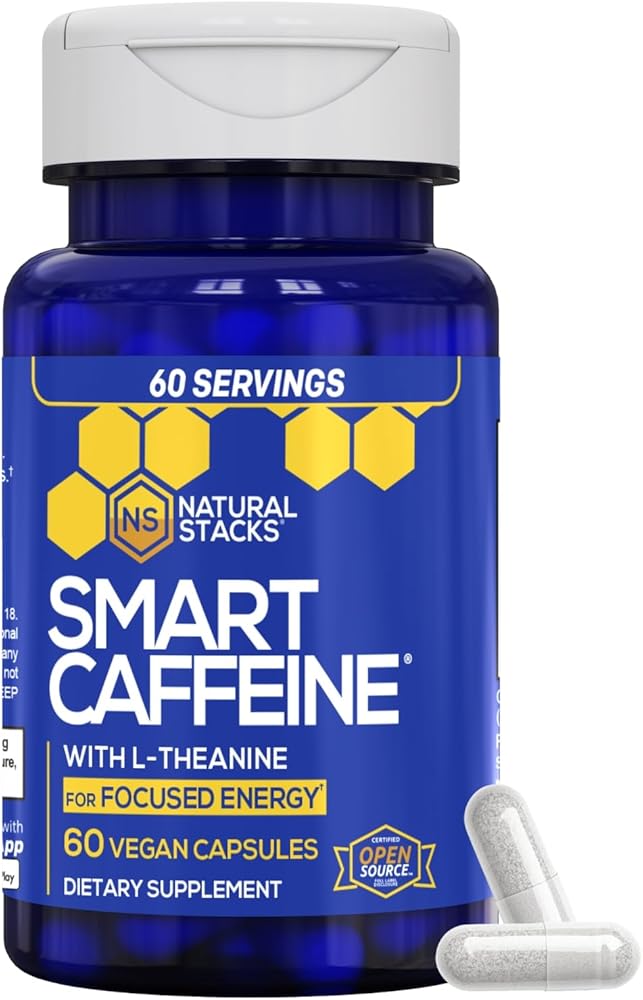 حبوب الكافيين الذكية من ناتشورال ستاكس 60 قيراط - 200 ملغ من الثيانين + 100 ملغ من الكافيين - طاقة فورية وتركيز للحياة المدرسية والعمل - بدون توتر أو تحطم