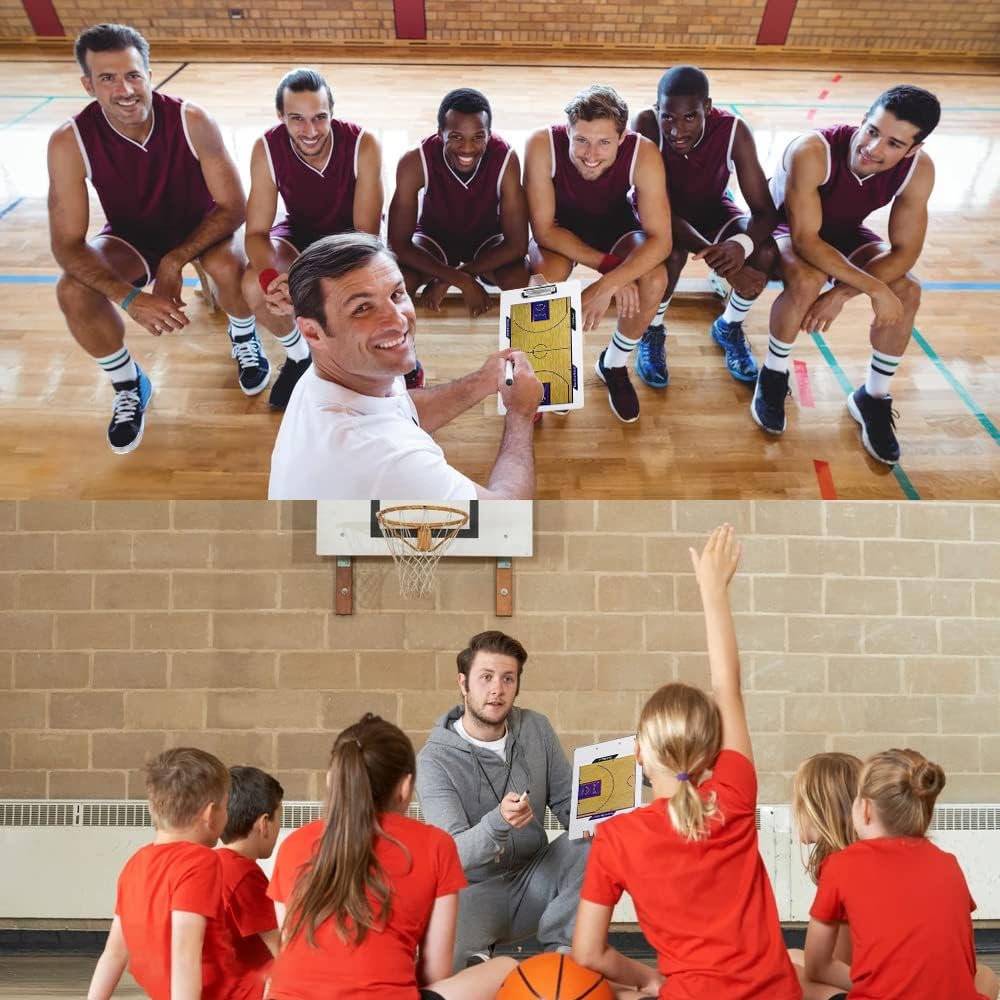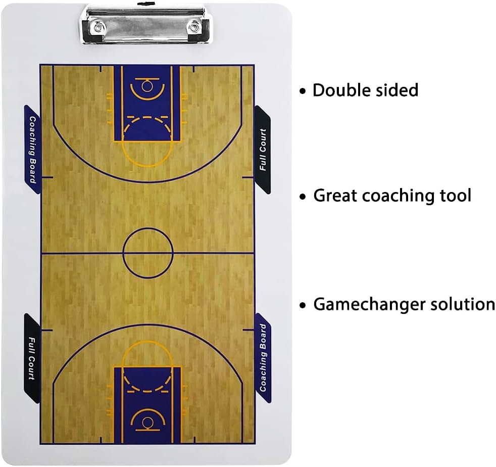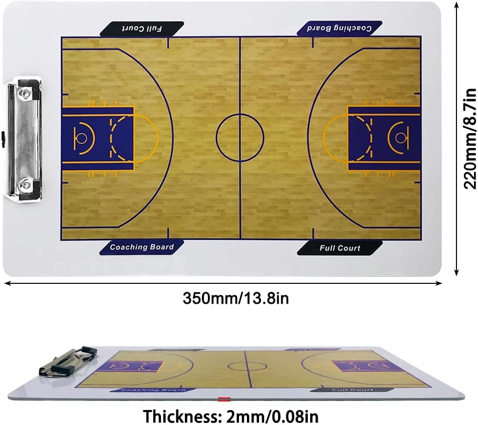 تصميم فريد: ينقسم لوحنا التكتيكي إلى ملعب كامل ونصف ملعب. يمكن طلاء كل جانب بقلم مائي، وهو أمر بسيط وسهل المسح. يمكن للمشبك الموجود في الأعلى حماية قلمك من الضياع.