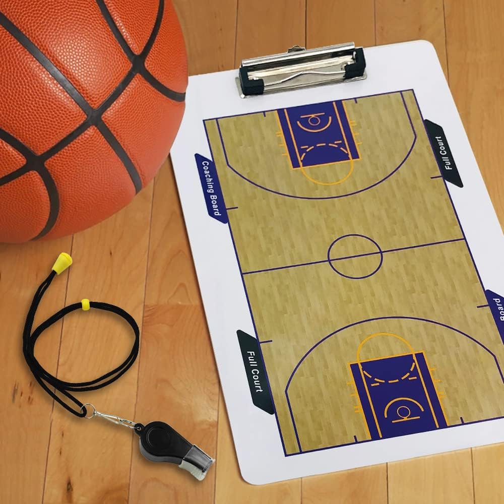 حافظة للمسح الجاف للمدربين، جانبان مع لوحة تحديد للمسح الجاف كاملة ونصف محكمة لكرة السلة وقطعتين من صفارة المدرب، ولعبة كرة السلة والقيادة التكتيكية لتدريب كرة السلة