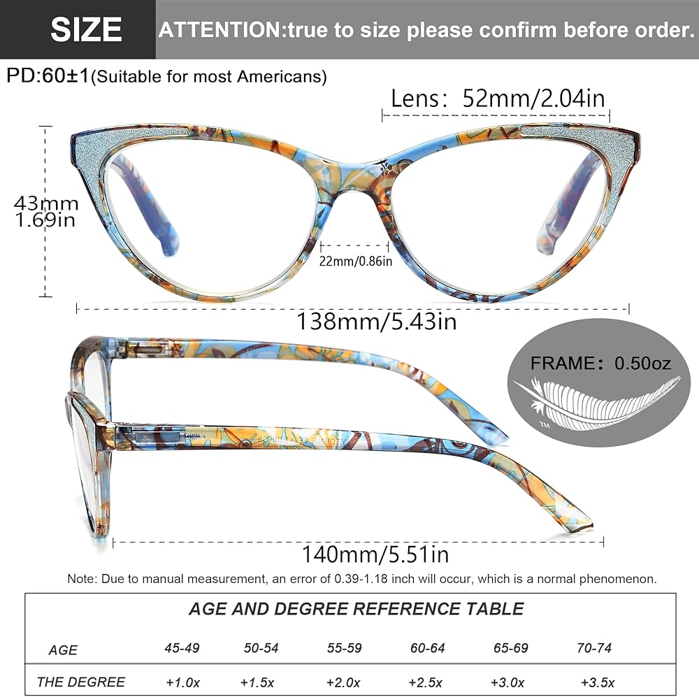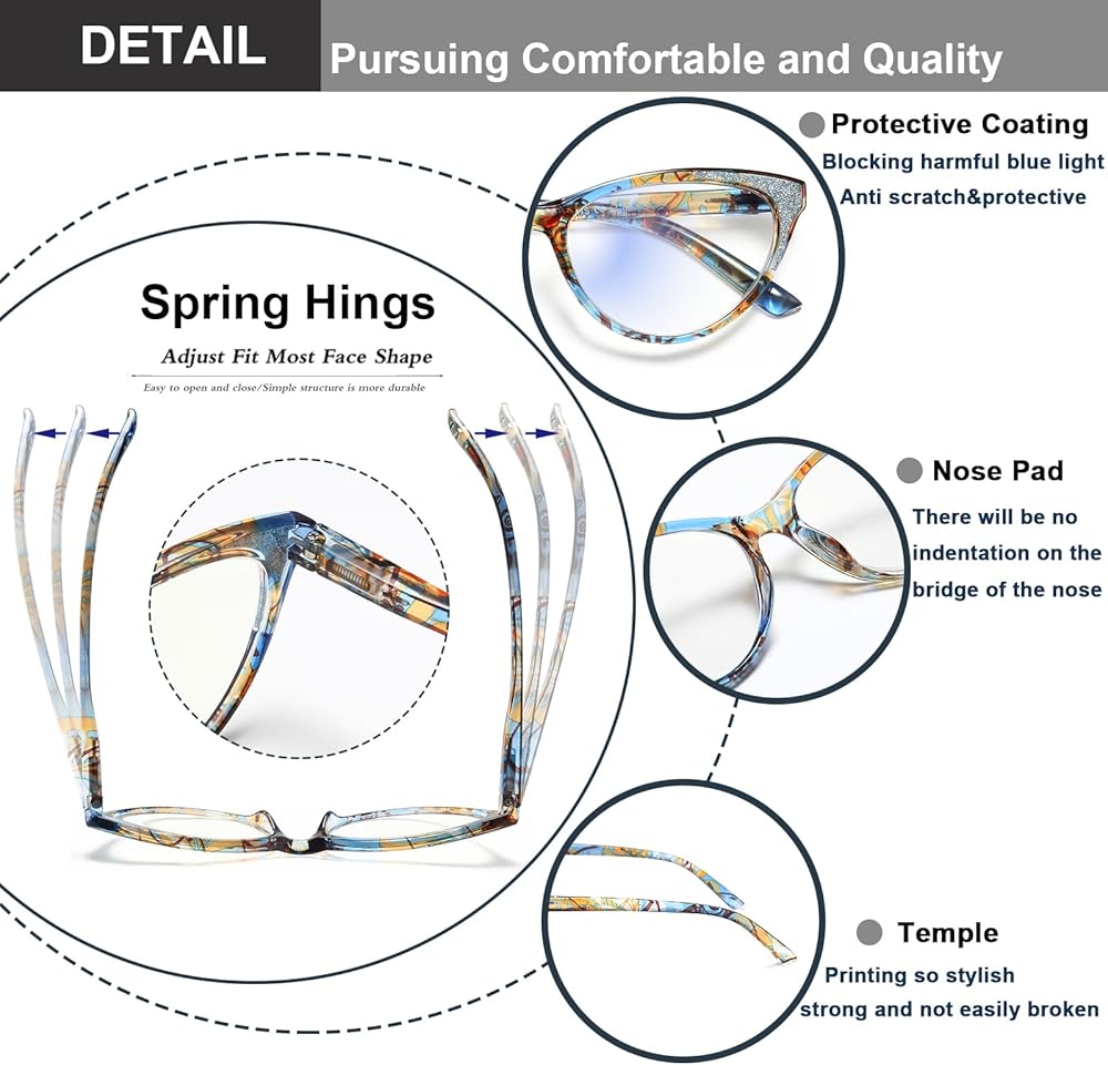 [إطار أنيق] - تم تصميم نظارات القراءة هذه للنساء على شكل عين القطة بإطار كاجوال، مما يجعلك تبدين احترافية وأنيقة أثناء العمل أو القراءة. نظارات قراءة الكمبيوتر مصنوعة من مادة الراتنج الخفيفة والمتينة من أجل المتانة والراحة عند الارتداء لفترة طويلة.
