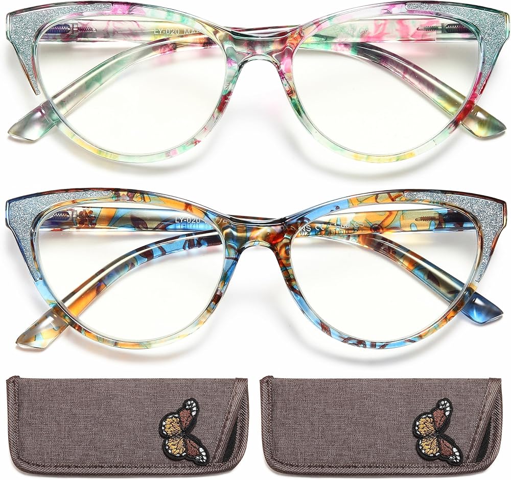 [عبوات قيمة للغاية] - زوجان من نظارات القراءة النسائية + 2 حقيبة فراشة ناعمة + 1 قطعة قماش عالية الجودة، مما يمنحك قيمة رائعة لمنتج عالي الجودة.