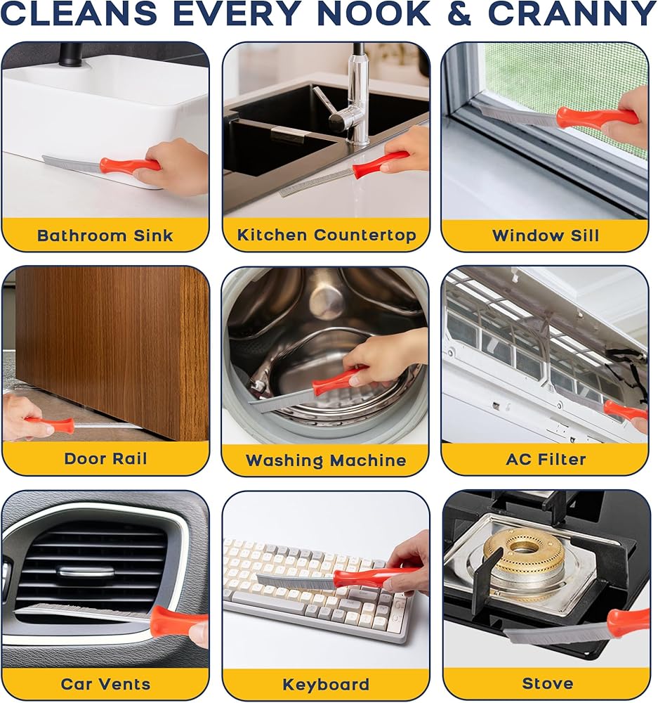 • فرشاة تنظيف الشقوق المحمولة: مجموعة فرشاة الجص الخاصة بنا تأتي مع فرشاة تنظيف الشقوق العميقة المحمولة. الحجم الصغير مثالي للوصول إلى المساحات الضيقة حيث لا يمكن للفرش الكبيرة الوصول إليها، مثل الصنابير وقواعد المراحيض وفي الزوايا.