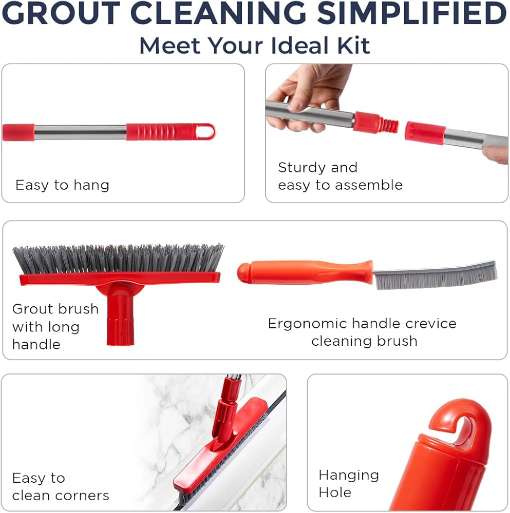 فرشاة الجص بمقبض طويل وفرشاة تنظيف الشقوق ذات الشعيرات الصلبة، منظف الجص لأرضيات البلاط، منظف الأرضيات لخط الجص البلاط، الاستخدام المنزلي، أدوات تنظيف الفجوات متعددة الأغراض من فوكستروت ليفينج