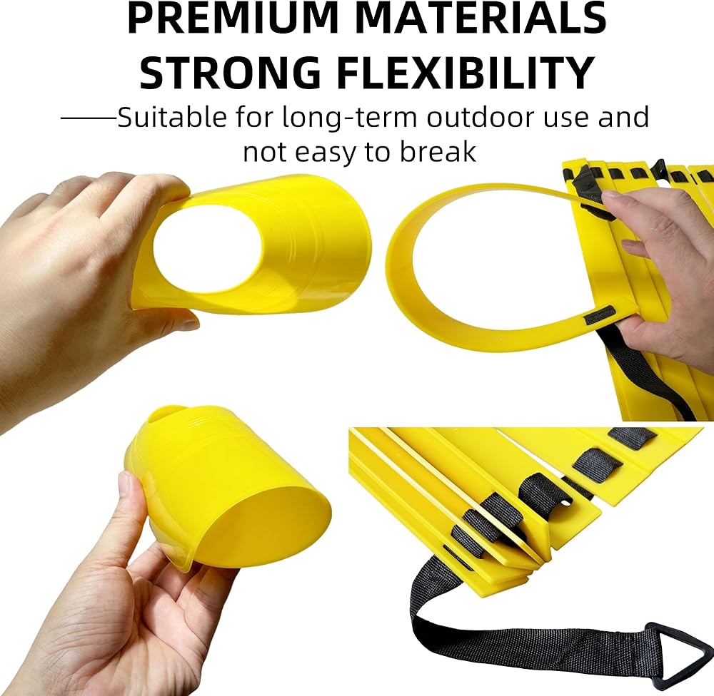 【متعددة الاستخدامات】معدات تدريب السرعة والرشاقة هذه مثالية لتحسين حركة القدم والتنسيق في الرياضات المختلفة مثل كرة القدم وكرة السلة وكرة القدم والبيسبول والمضمار والميدان. ويمكن استخدامها أيضًا كأعمدة ثني للأحصنة أو الحيوانات الأخرى أثناء تدريب الرشاقة، مثل كالكلاب.