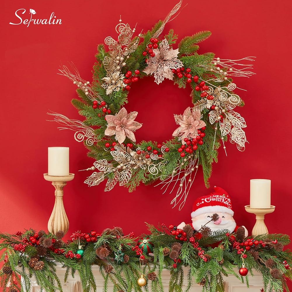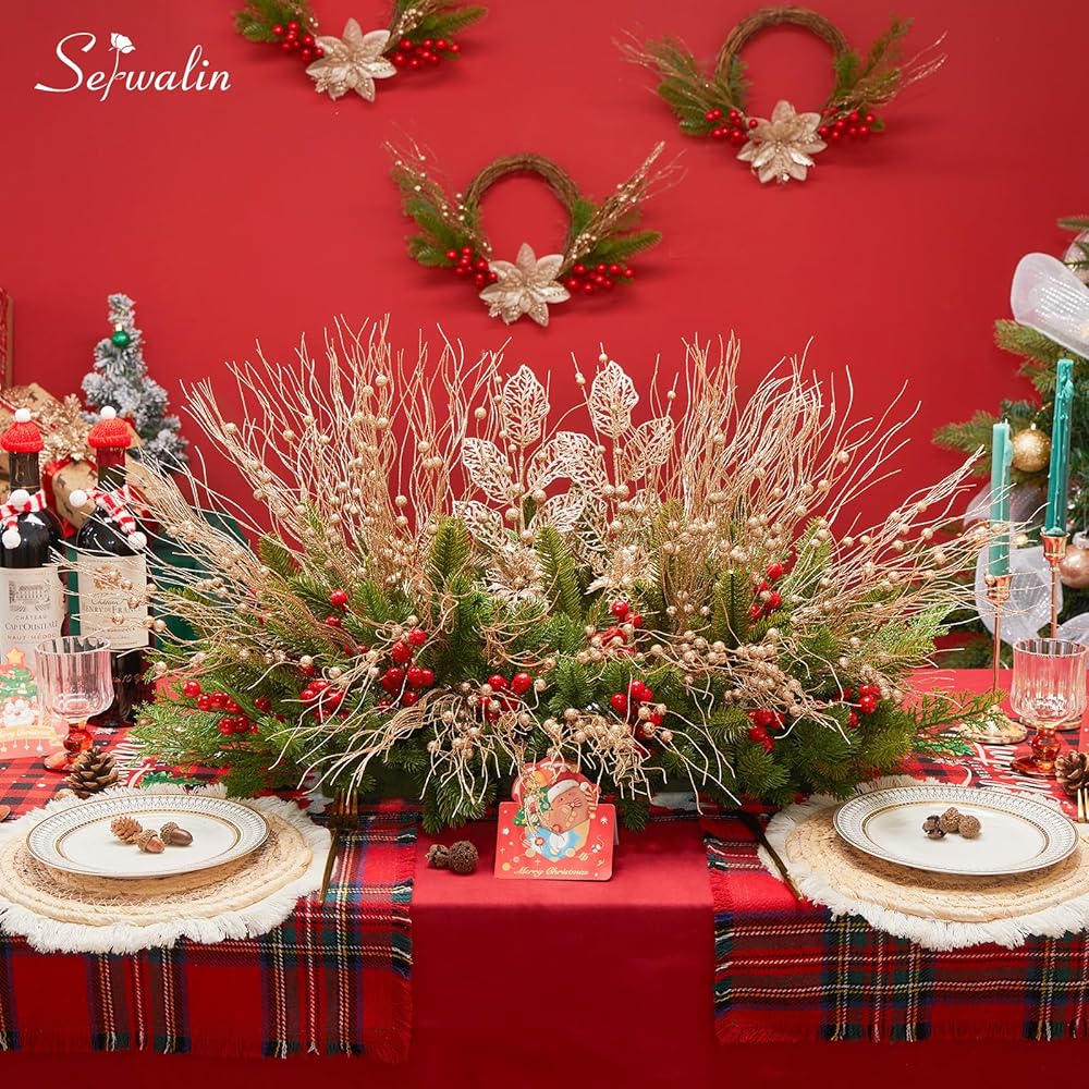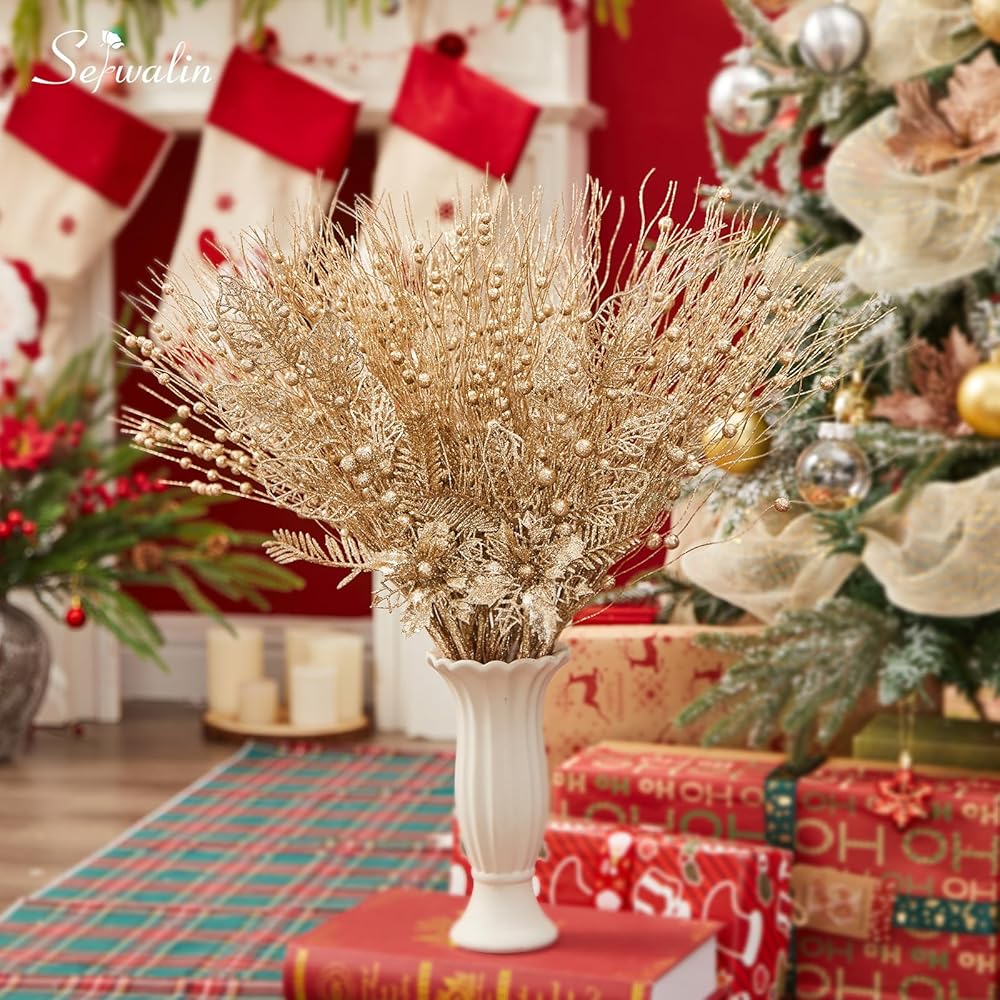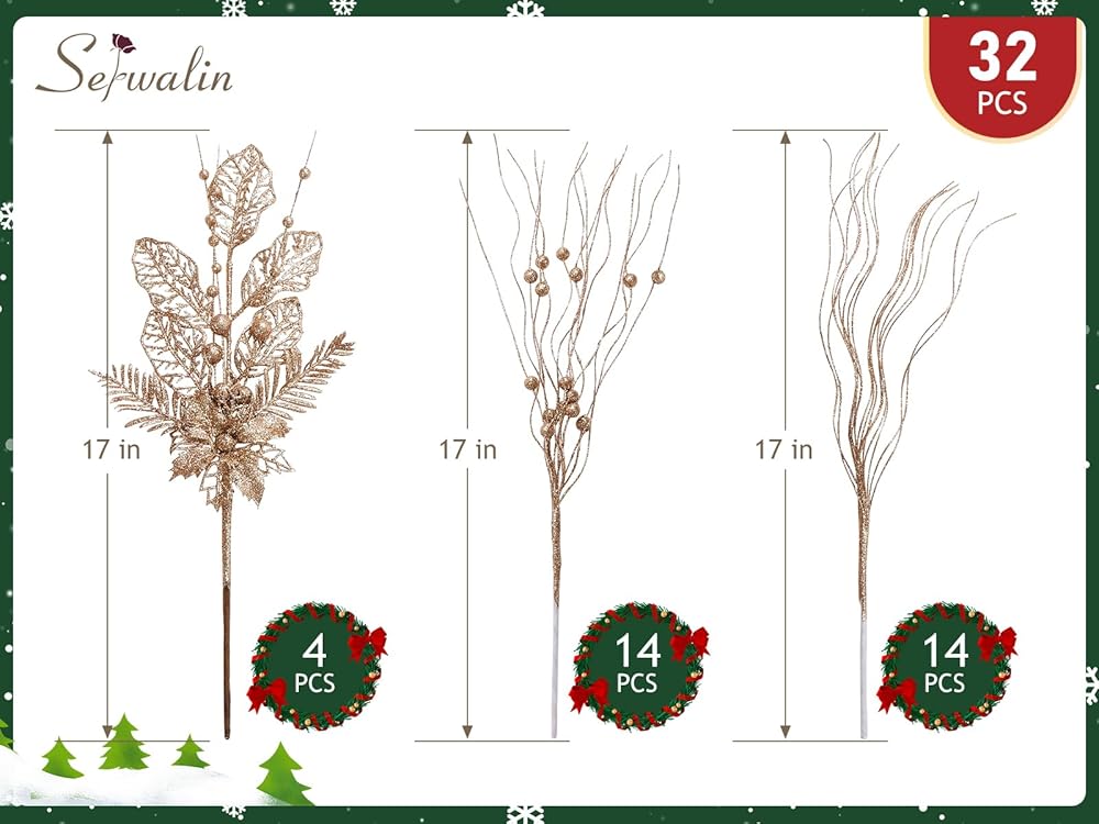 serwalin 32 جهاز كمبيوتر شخصى شجرة عيد الميلاد يختار الحشو، بريق الاصطناعي التوت والزهور فروع الجذعية اللقطات والبخاخات لشجرة عيد الميلاد يختار الزينة DIY عيد الميلاد اكليلا من الزهور، والحرف اليدوية، وديكور المنزل عطلة (الشمبانيا)