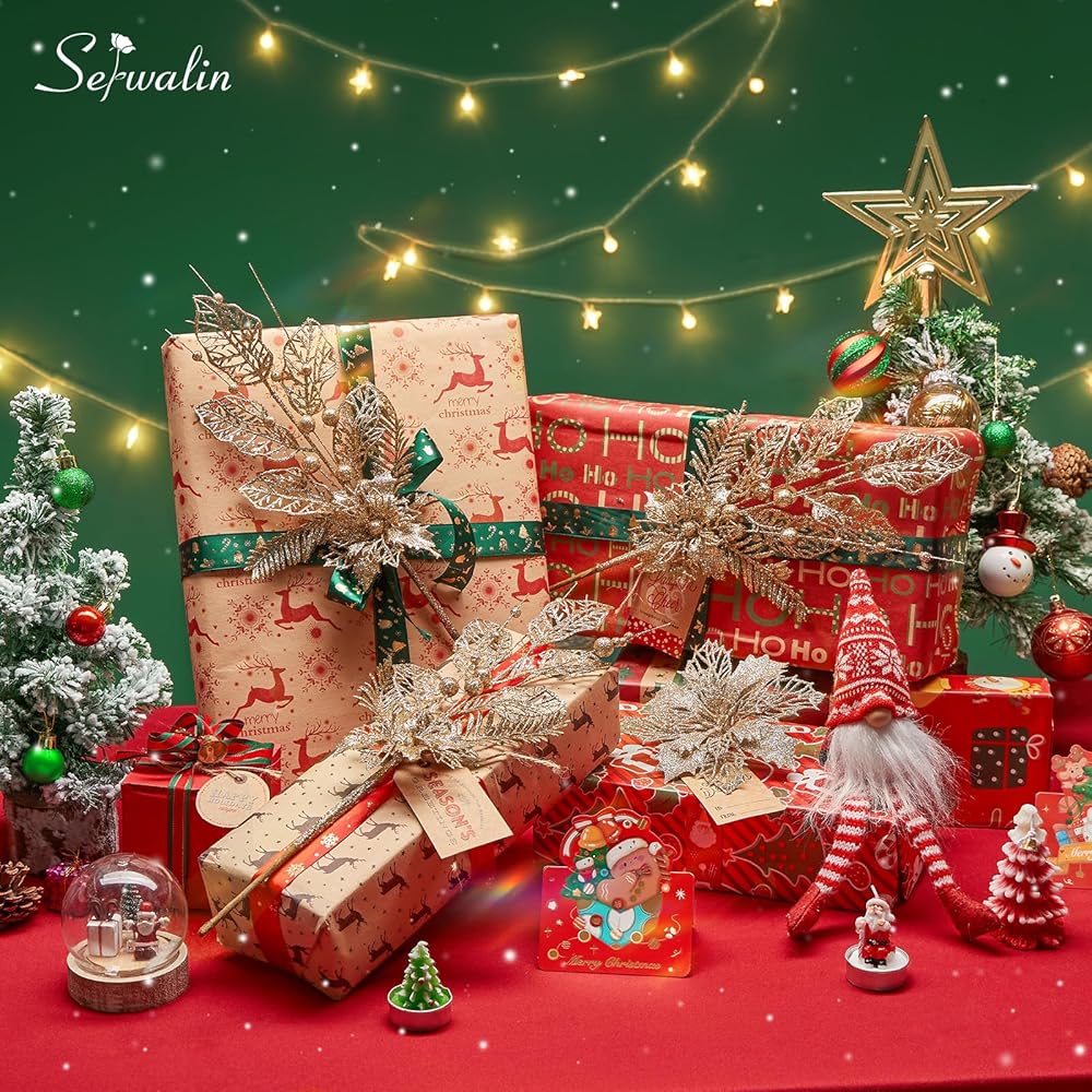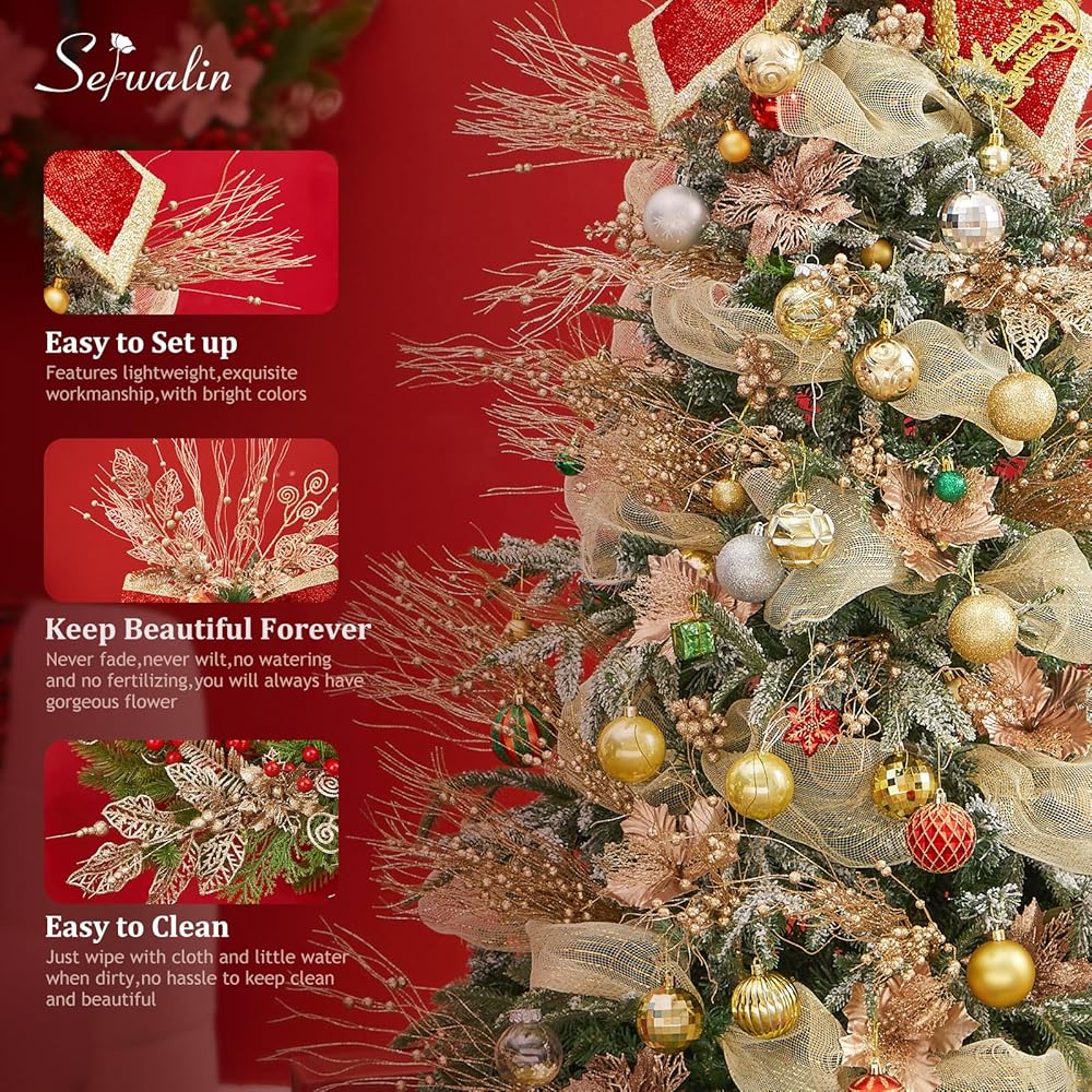 زهور البونسيتة اللامعة الفاخرة: حشو أعواد شجرة الكريسماس هذه مصنوعة من الحرير والبلاستيك عالي الجودة مع مسحوق لامع. قد ينفجر المسحوق اللامع بمجرد ظهوره. لا يؤثر على المظهر! نأمل في الحصول على تفهمكم ~