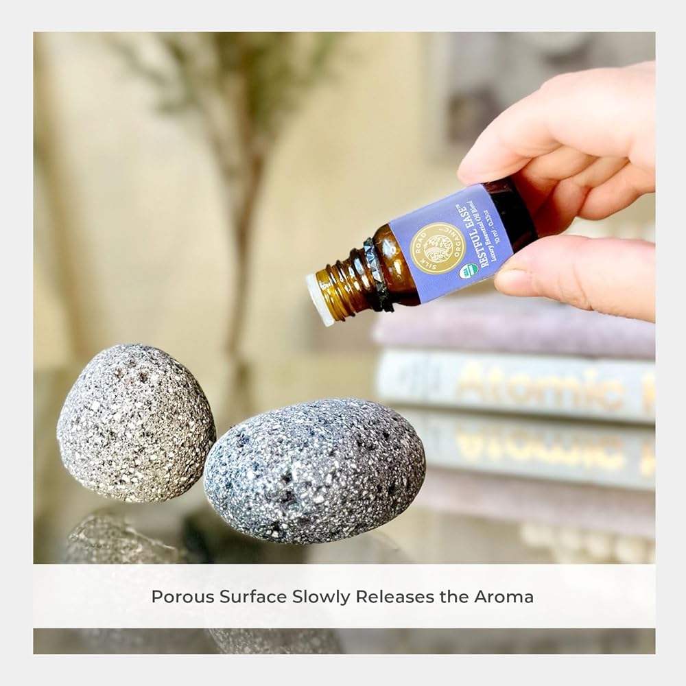 سهل الاستخدام - اسكب 5-8 قطرات من الزيت العطري على صخرة اللافا. يمتص ناشر الحجر العطري الرائحة ويطلقها. أضف المزيد حسب الحاجة. لتغيير الرائحة، اغسليه بالماء الساخن واتركيه ليجف.