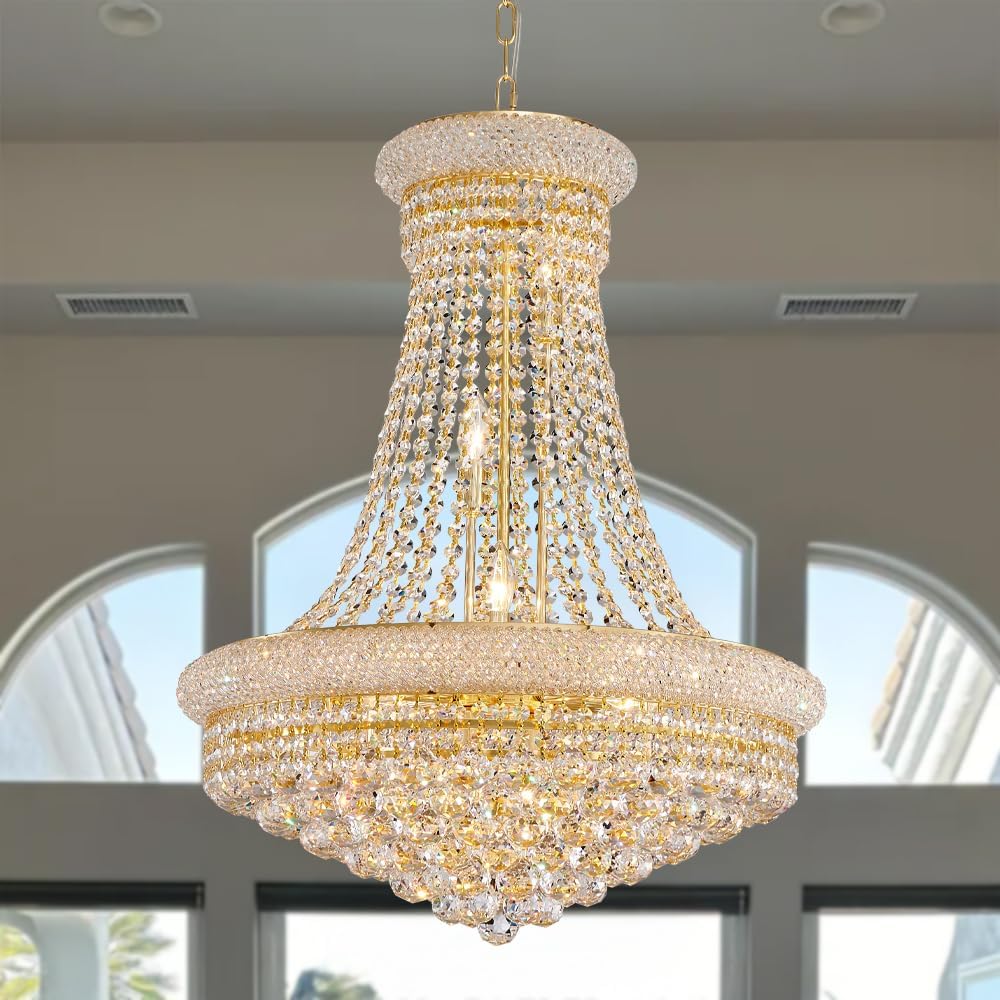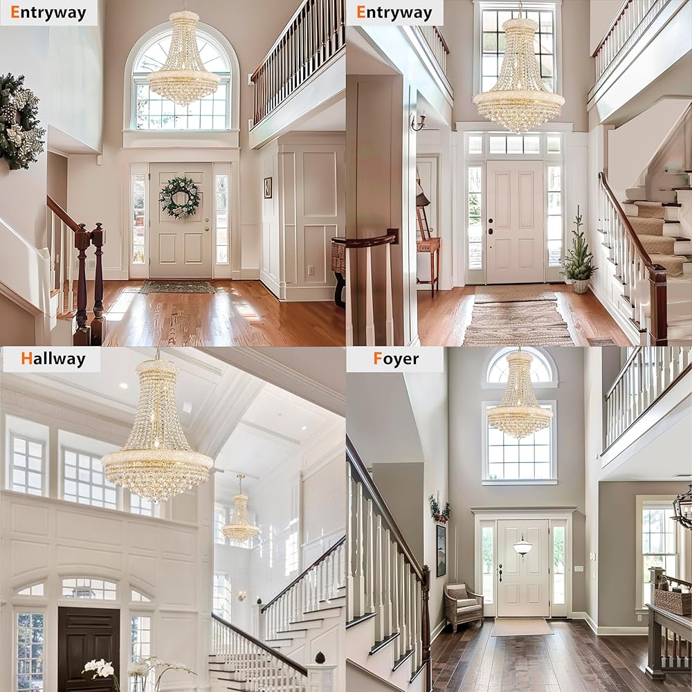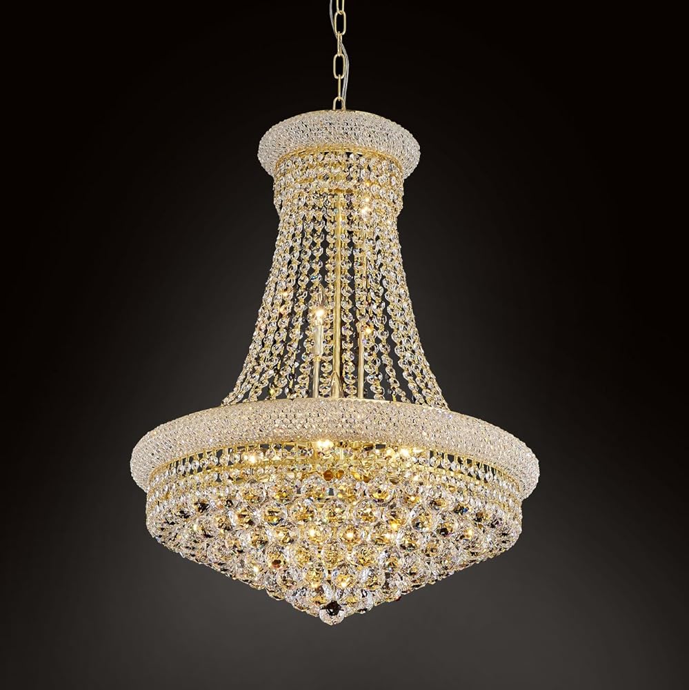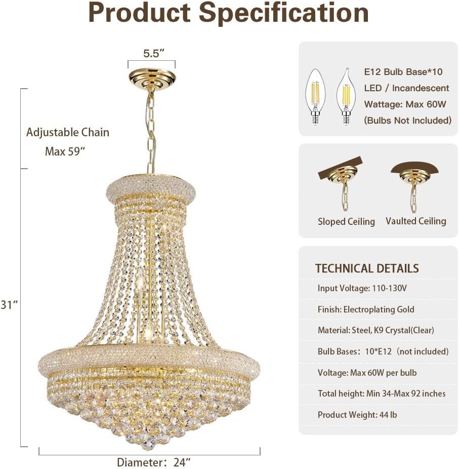 • ✔【مواصفات الثريا】هذه ثريا إمبراطورية متوسطة الحجم، أبعاد الثريا الكريستالية هي الارتفاع 47 بوصة، العرض 31.5 بوصة، يمكنك ضبط طول السلاسل والأسلاك وفقًا لاحتياجاتك (طول السلسلة 59 بوصة)، شبكة الثريا الوزن حوالي 82 جنيها