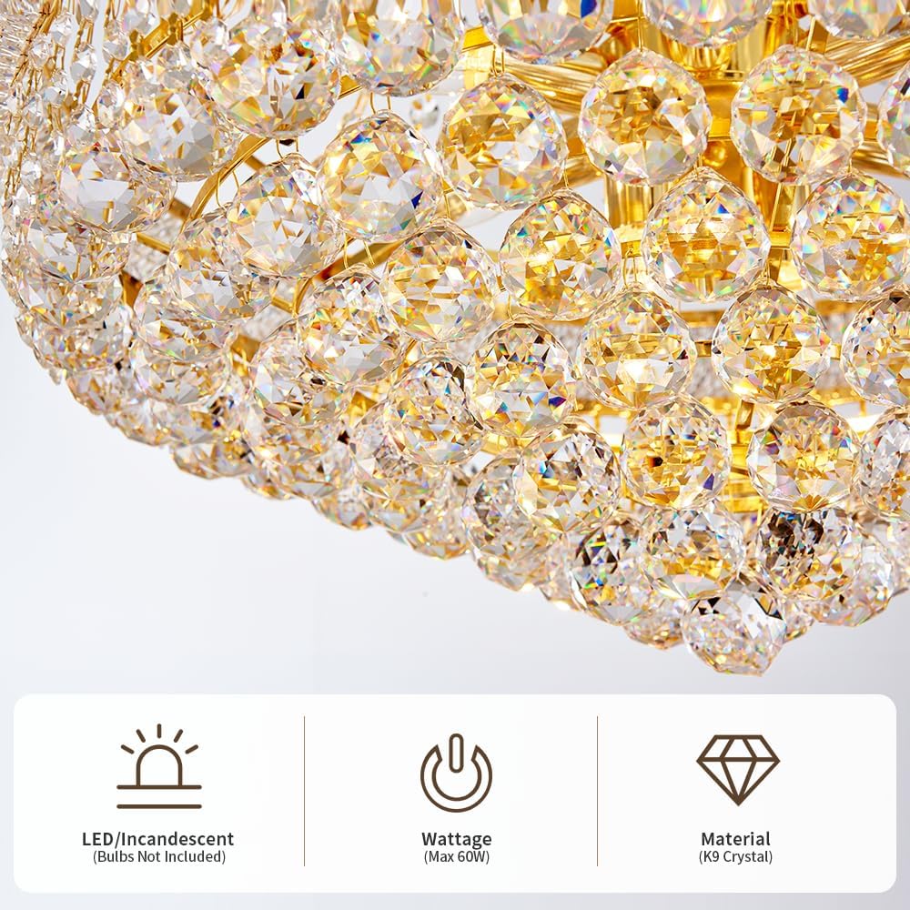 • ✔【مصابيح E12】 المصابيح غير متضمنة، إضاءة الثريا الكريستالية K9 متوافقة مع أي لمبة E12. مطلوب 19 لمبة.