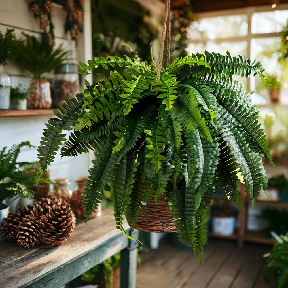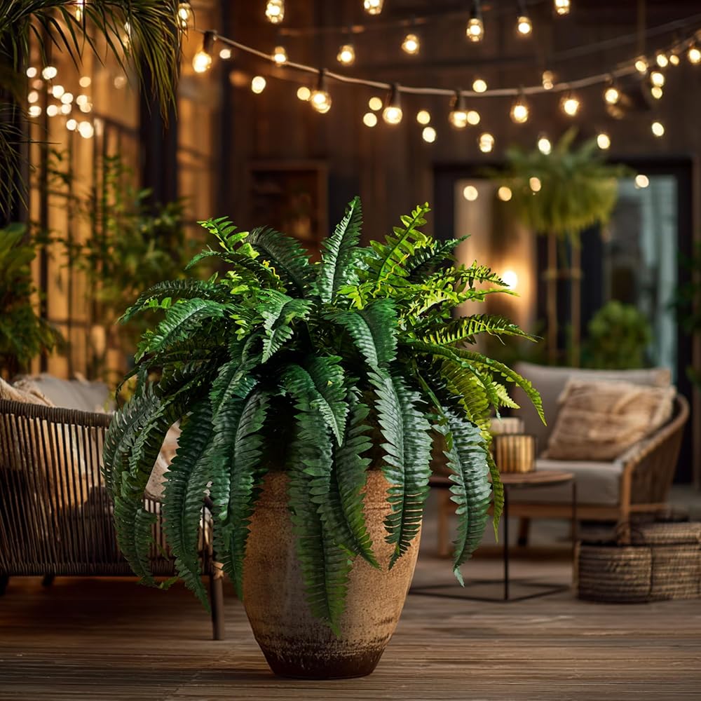 تتميز سرخس بوسطن الاصطناعية هذه بأنها مقاومة للأشعة فوق البنفسجية، مما يجعلها مناسبة للاستخدام الداخلي والخارجي. تبدو سرخس بوسطن الاصطناعية الخاصة بنا دائمًا طازجة وحيوية، وتشبه مظهر النباتات الحقيقية إلى حد كبير. ولكن على عكس النباتات الحقيقية، فإن سيقان سرخس بوسطن الصناعية الخاصة بنا لا تحتاج إلى سقاية أو تشذيب أو ضوء الشمس، مما يجعلها سهلة الصيانة بشكل لا يصدق مع الحفاظ على جمالها بمرور الوقت.