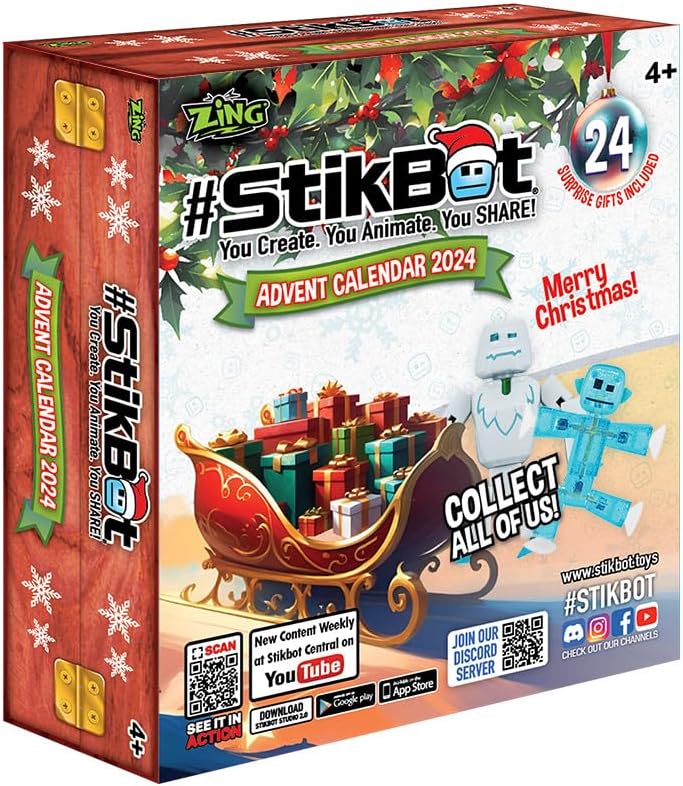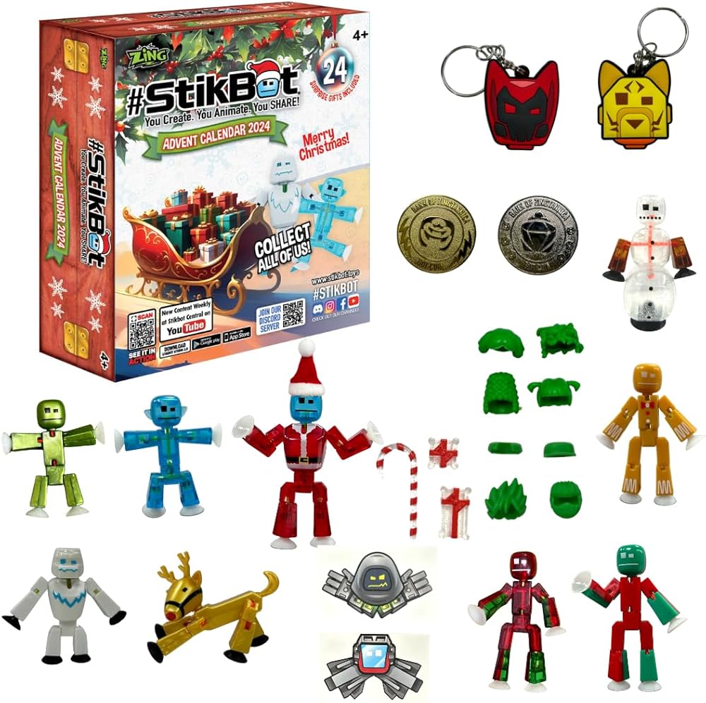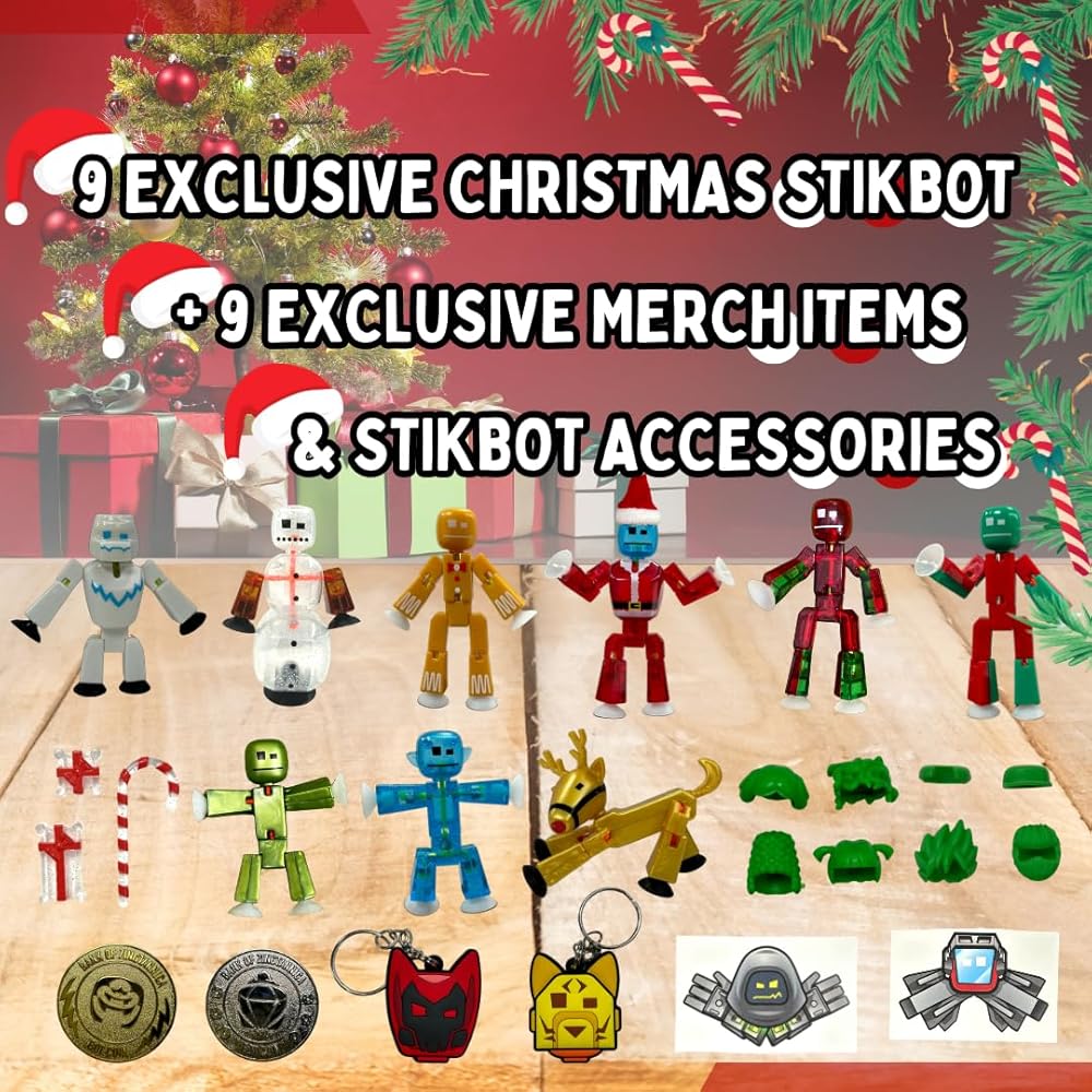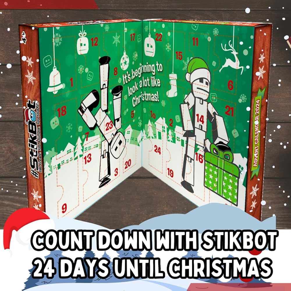 🎁 هدية مثالية للعطلات اجعل موسم العطلات أكثر متعة مع تقويم Stikbot Advent ذو 24 باب. قم بالعد التنازلي لعيد الميلاد من خلال فتح باب كل يوم للعثور على شخصيات Stikbot جديدة وعناصر لهواة الجمع تحت عنوان العطلة! هذه هدية رائعة للأطفال من سن 4 سنوات فما فوق والذين يحبون Stikbots.