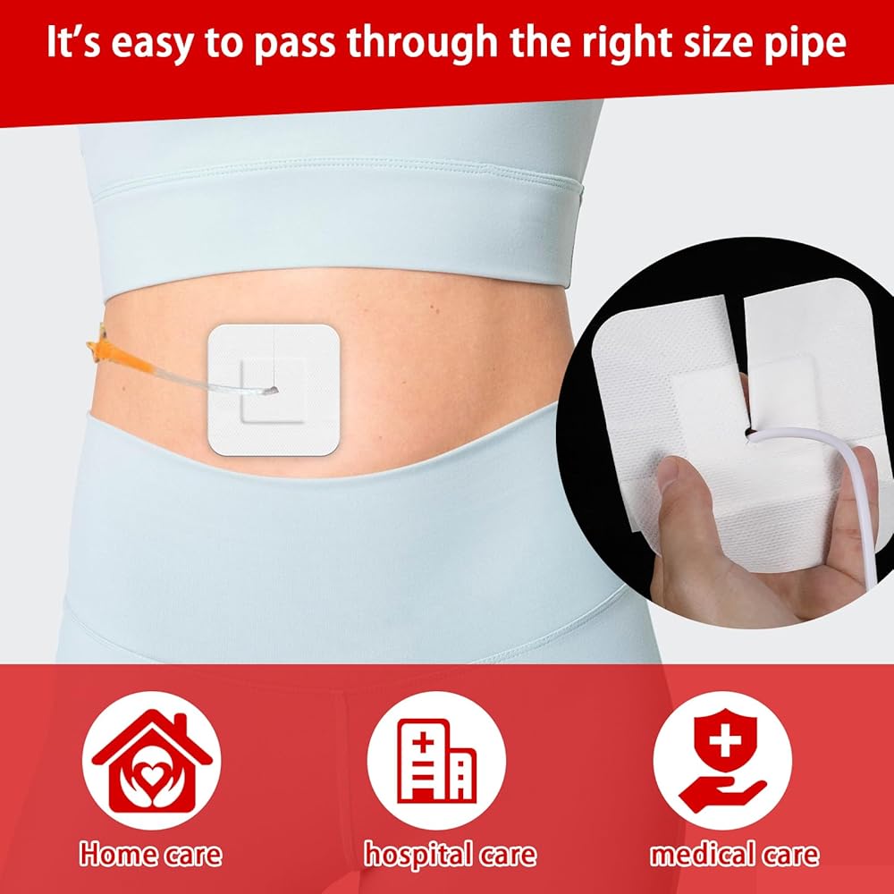 【Super Absorbent】These feeding tube pads are very comfortable, soft, absorbent, and thick enough to absorb blood or body fluids, any fluid that may leak out around the G tube will be absorbed immediately! In addition, it can also provide some cushioning for postoperative incision wounds. Absorbing leaks keeps it dry and hygienic, thus reducing the chance of infection. Used for suprapubic catheters, it really helps to clean up the Peg tube feeding stoma easily.