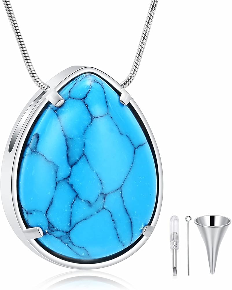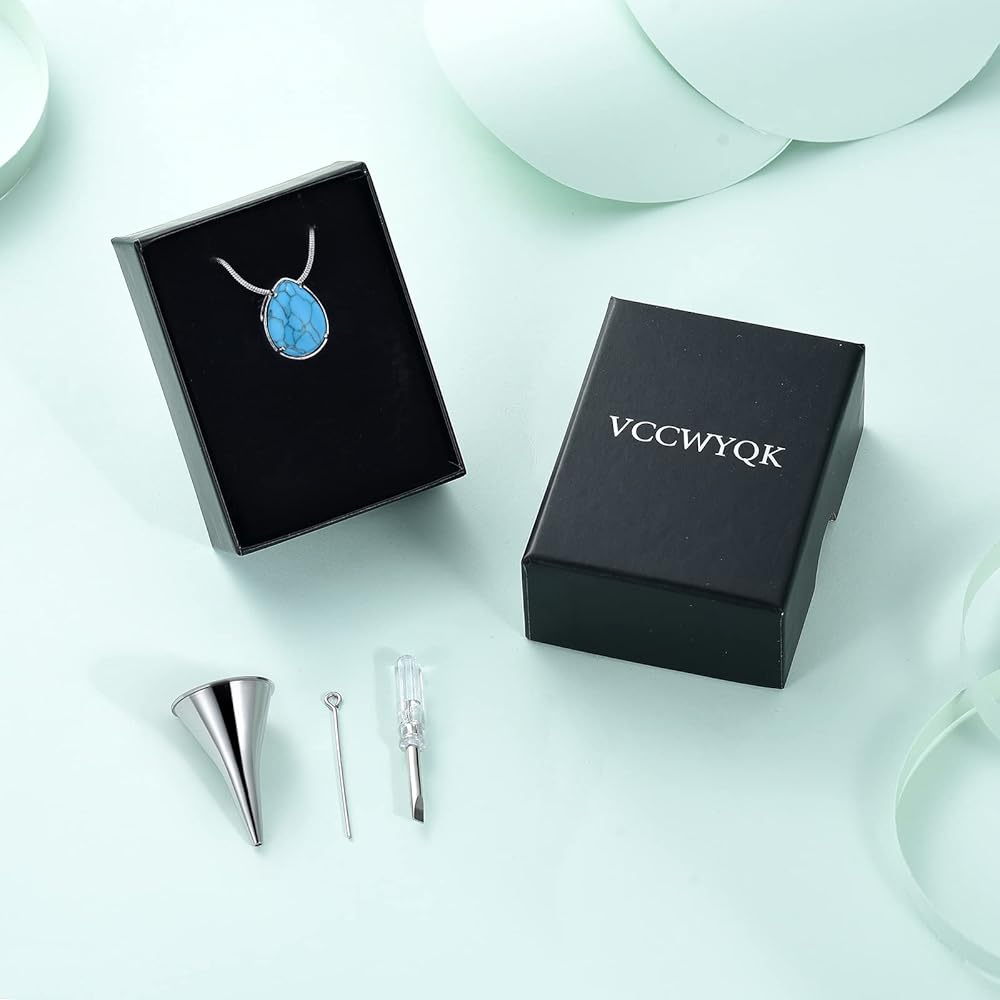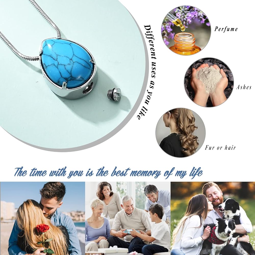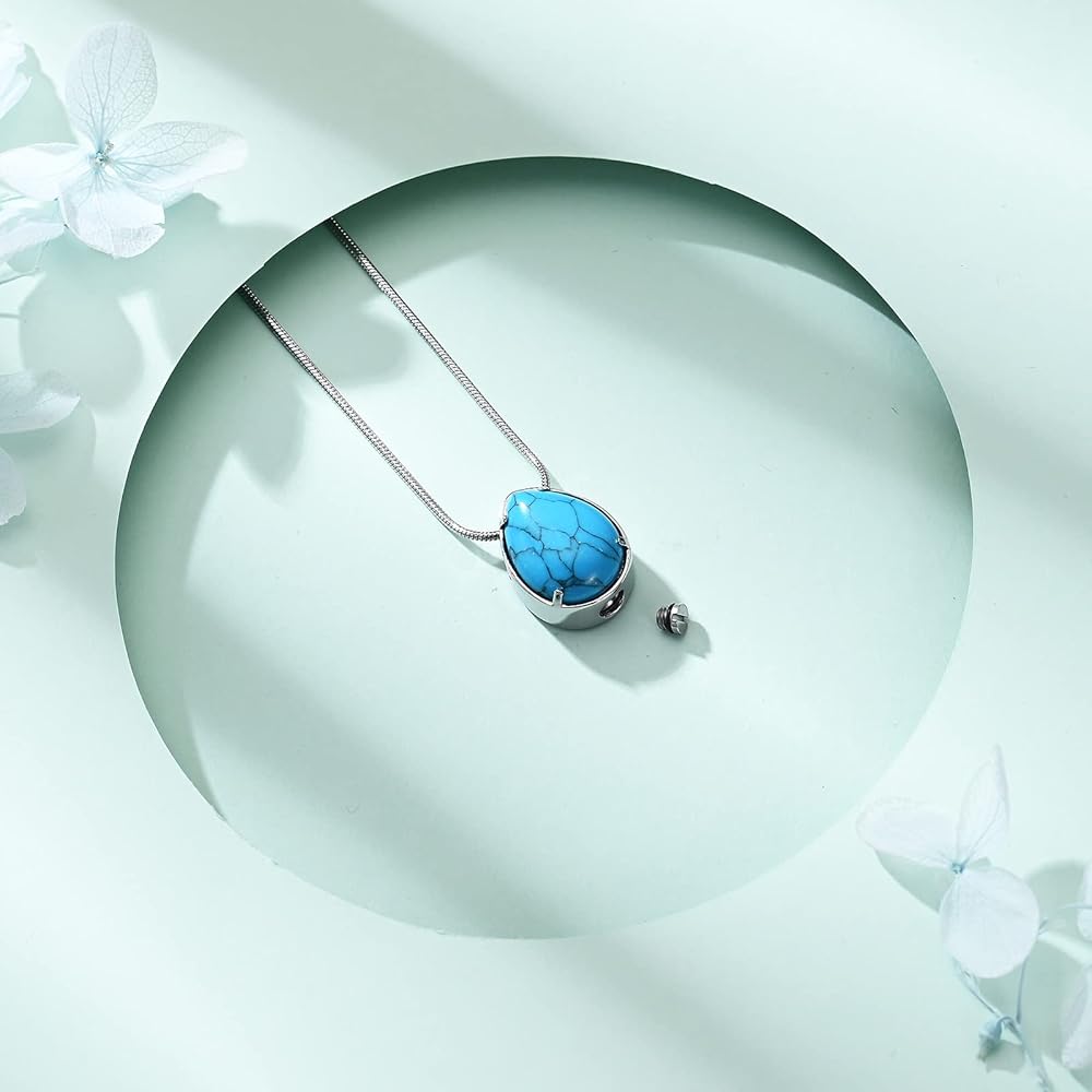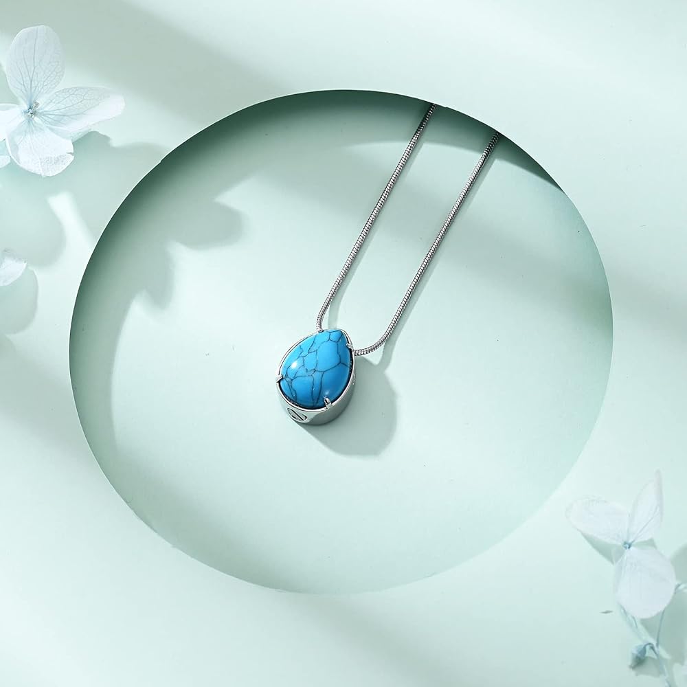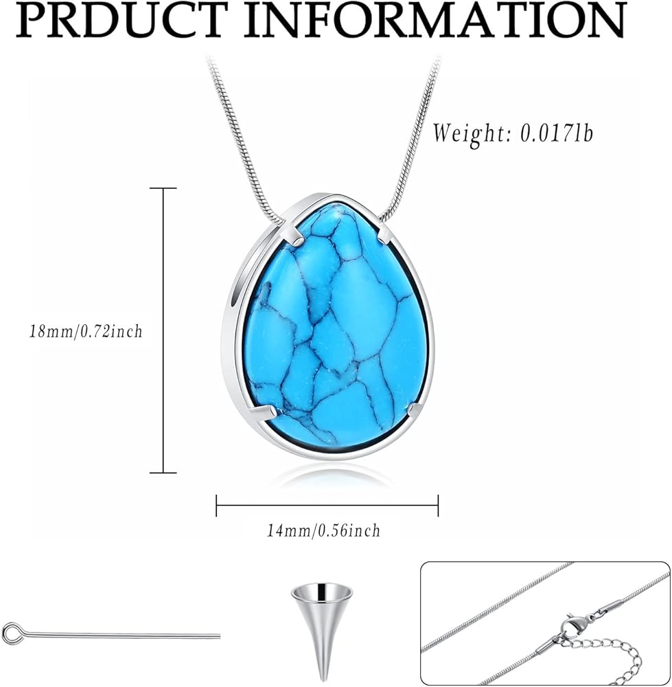 ✔قلادات فيروزية للرماد: يرجى تخزينها بشكل منفصل لتجنب الخدش، وإبقائها بعيدًا عن المواد الكيميائية والحمام والاصطدام لتجنب التلف. تصميم قلادة على شكل دمعة مع الفيروز أنيق وشعبي، مما سيجعلك أكثر أناقة وعصرية.