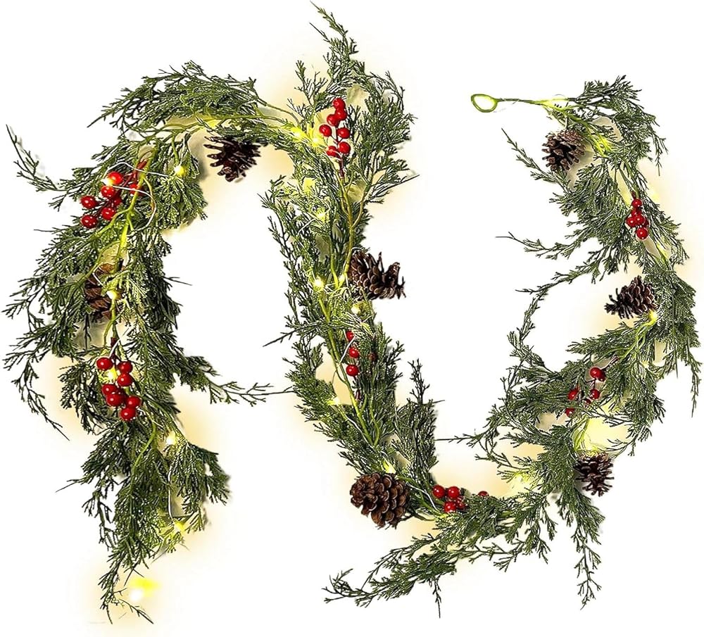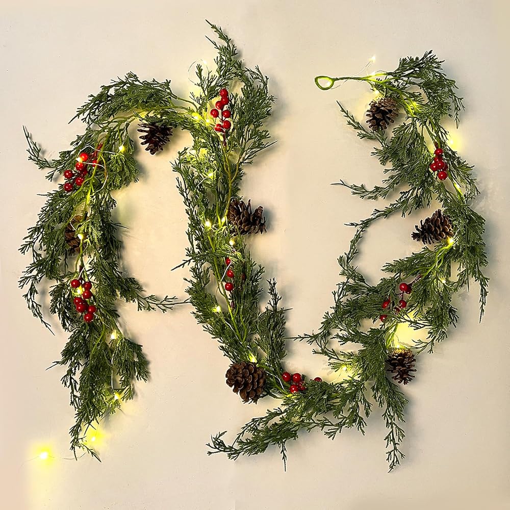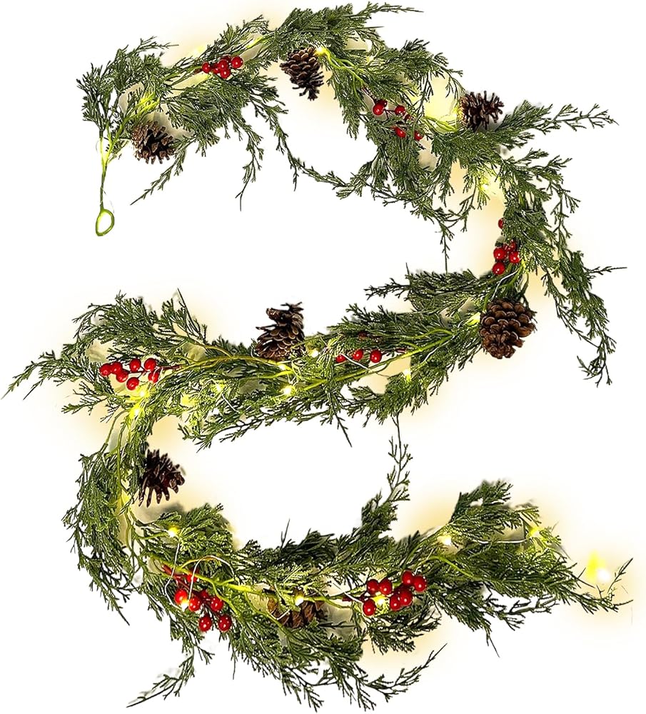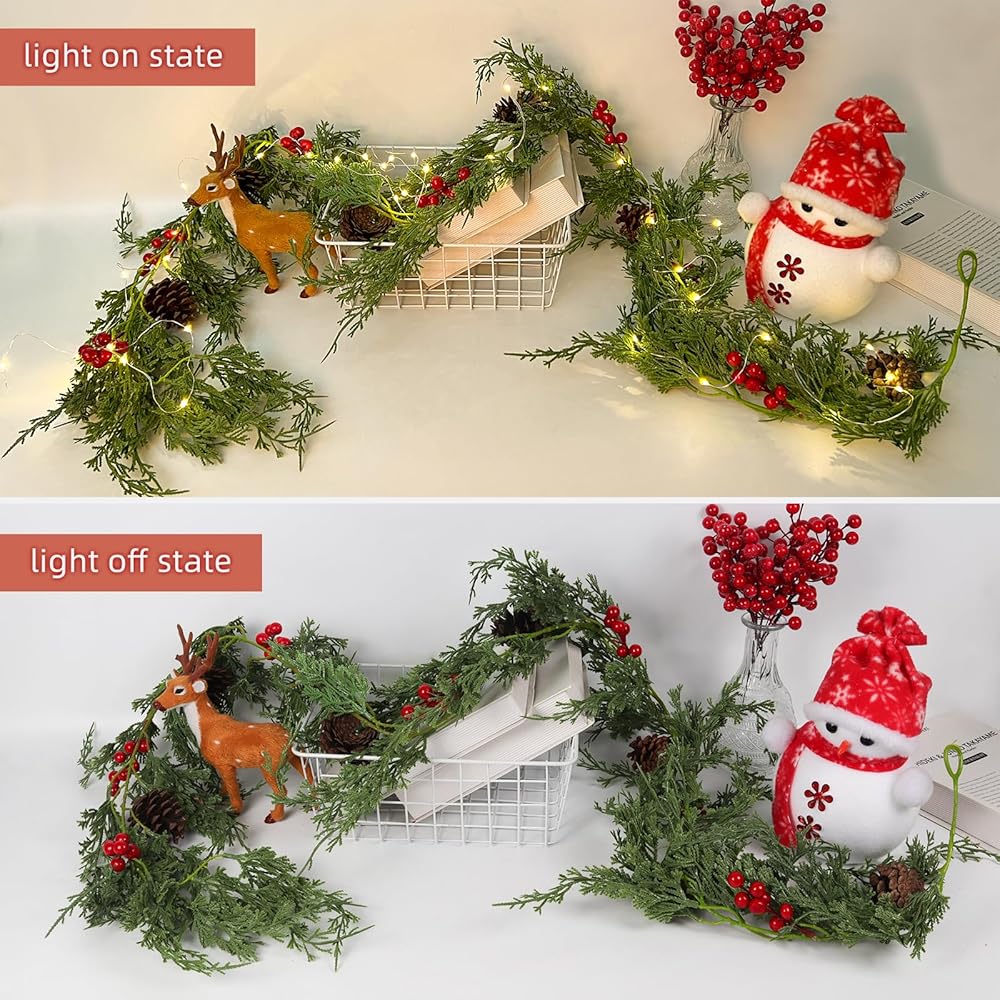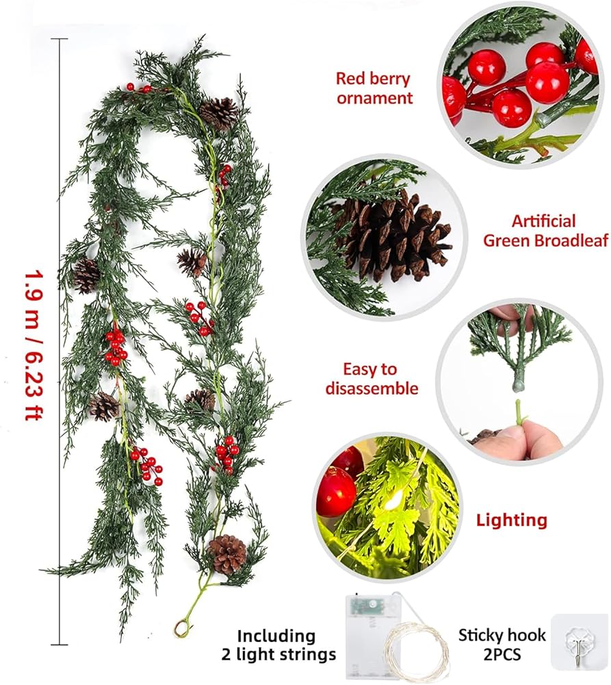 【تشمل العبوة】تتضمن العبوة إكليلًا صناعيًا من خشب الأرز لعيد الميلاد. يبلغ طول إكليل خشب الأرز لعيد الميلاد 190 سم/6.23 قدم. يحتوي كل إكليل احتفالي من الخضرة على حلقة في النهاية لسهولة التعليق، وهو مثالي للعطلات والخريف والديكورات الداخلية والخارجية.