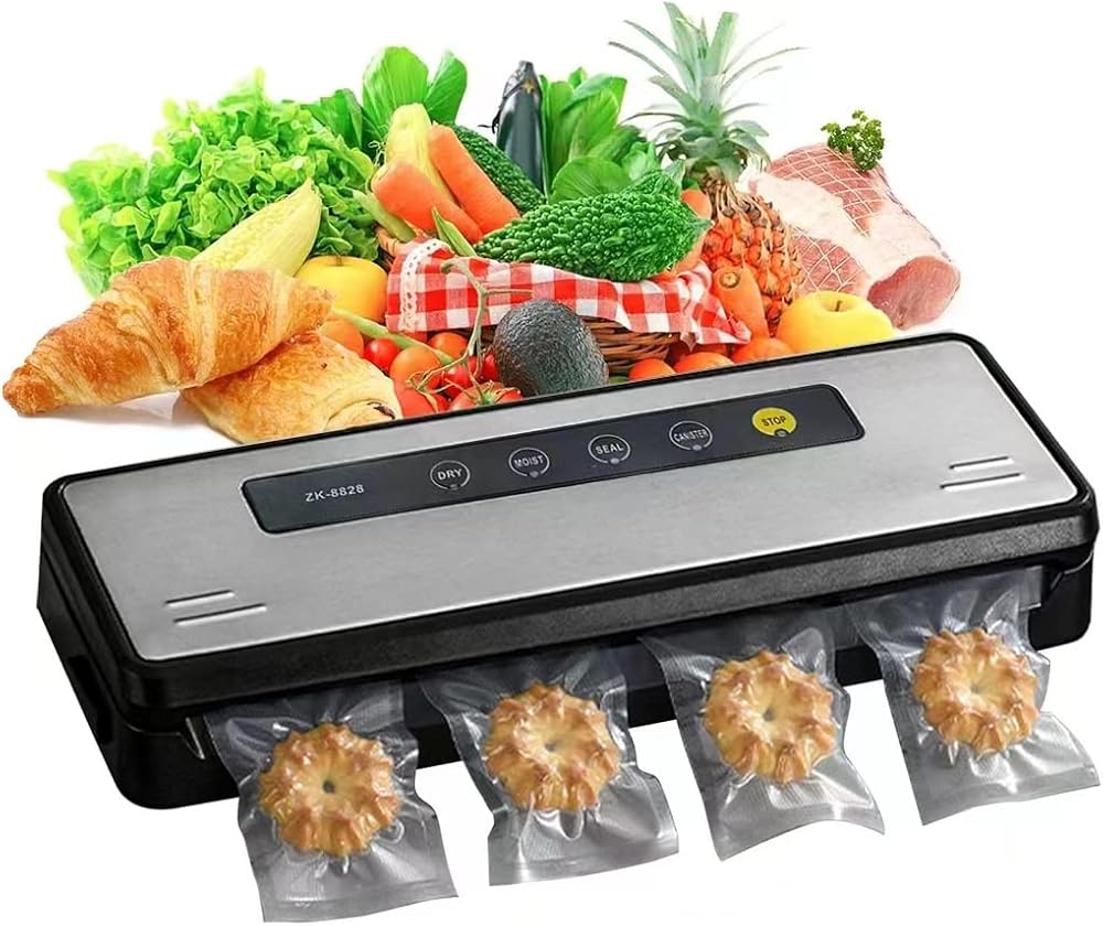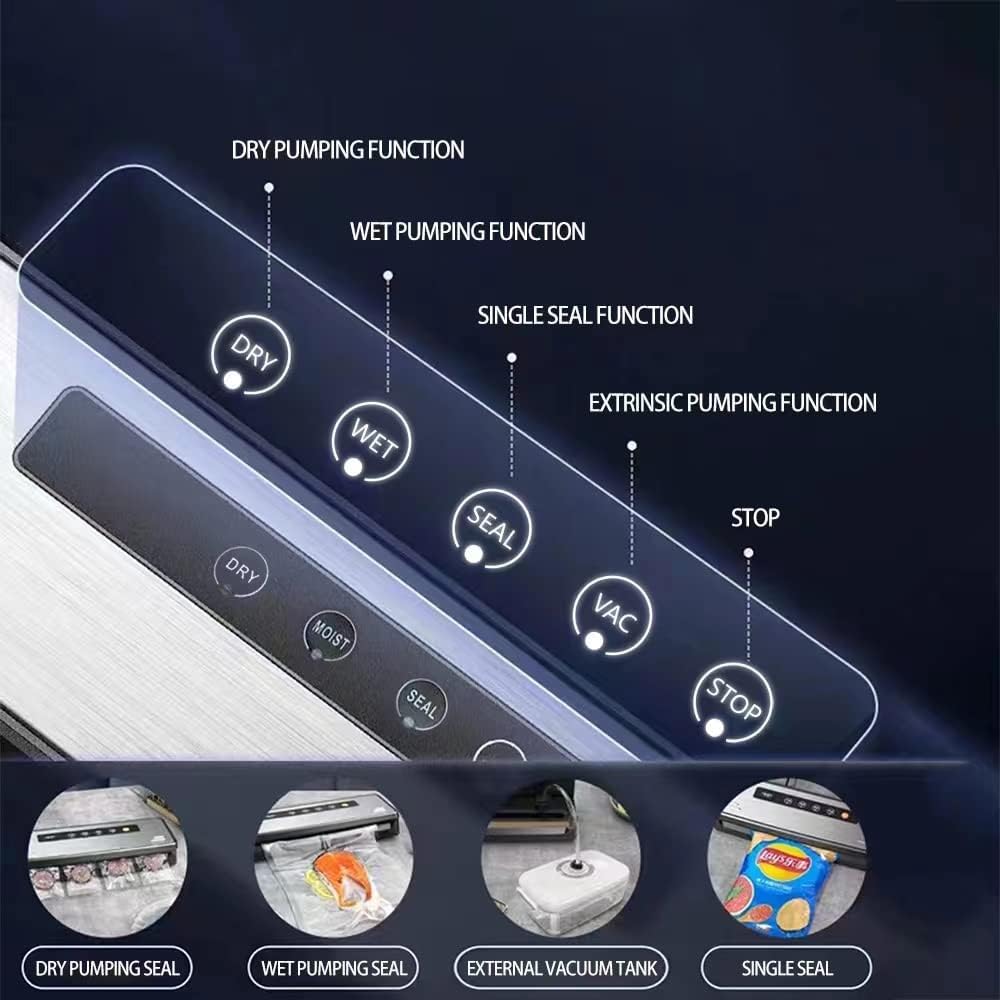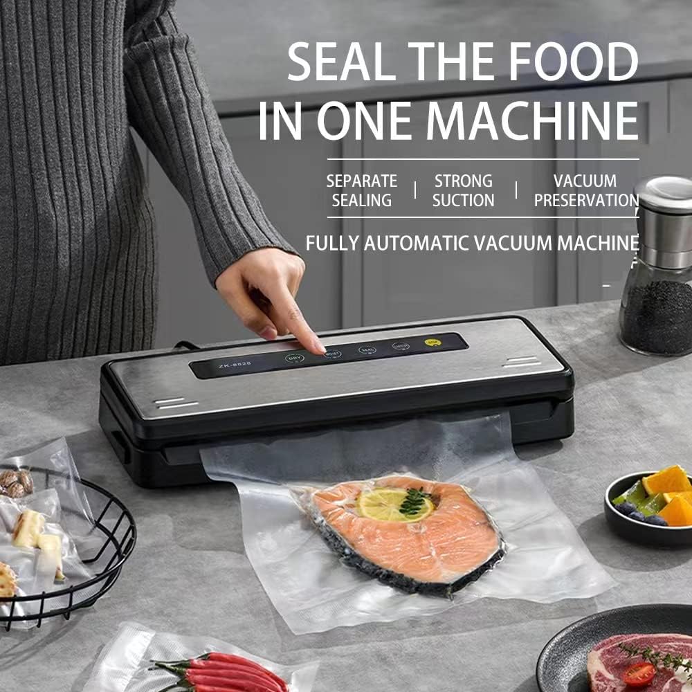 ماكينة إغلاق الهواء، ماكينة إغلاق الهواء الرطبة الجافة مع 10 أكياس صغيرة لتخزين الطعام، نظام إغلاق الهواء الأوتوماتيكي الكامل للمطبخ من أجل فيديو رائع، نضارة الوجبات الخفيفة، لوحة من الفولاذ المقاوم للصدأ، ضوء مؤشر LED