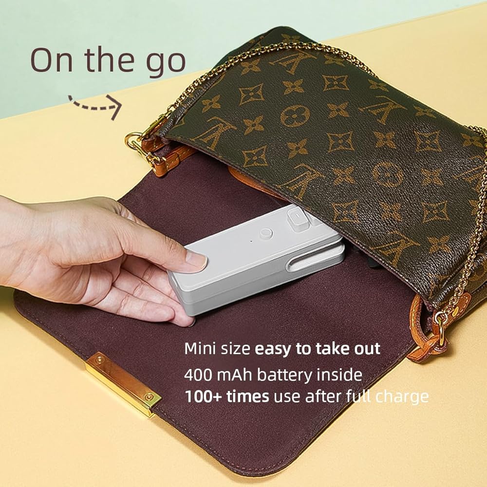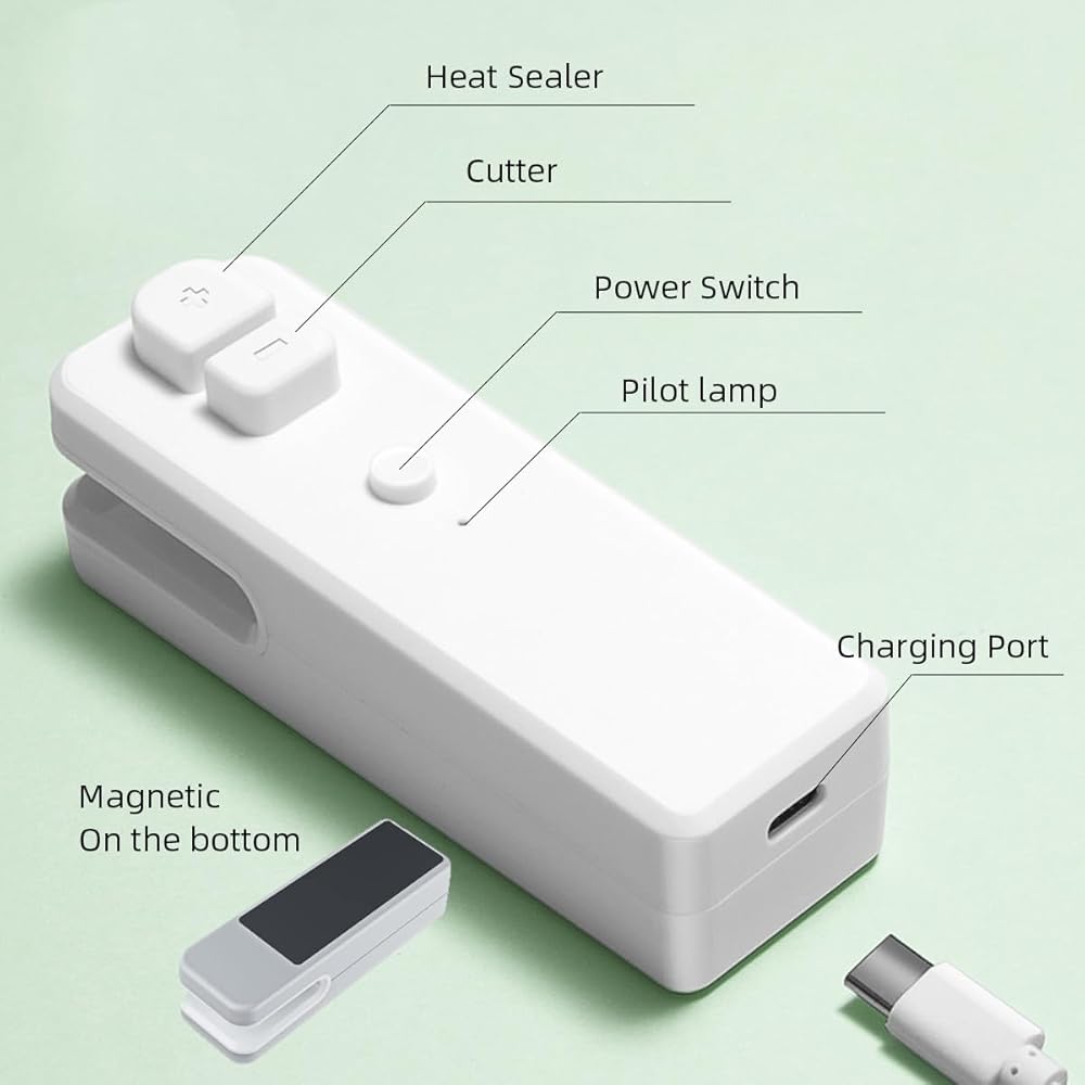 قابلة لإعادة الشحن وفعالة: قل وداعًا لاستبدال البطاريات باستمرار. تتميز أداة إغلاق الأكياس الصغيرة الخاصة بنا ببطارية مدمجة قابلة لإعادة الشحن بسعة 400 مللي امبير في الساعة، مما يضمن أداءً يدوم طويلاً. ببساطة قم بتوصيل مانع التسرب بأي كيبل شحن من النوع سي (متضمن)، وسيكون جاهزًا للاستخدام في وقت قصير.