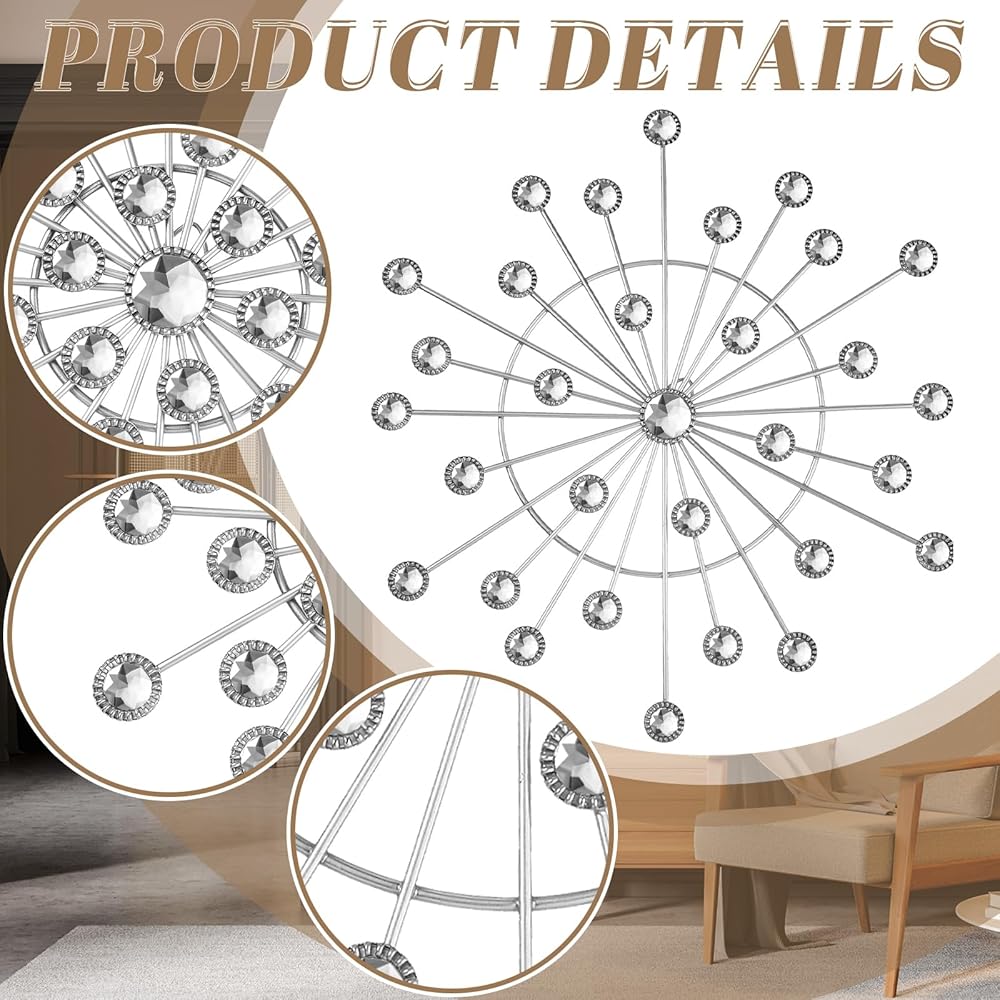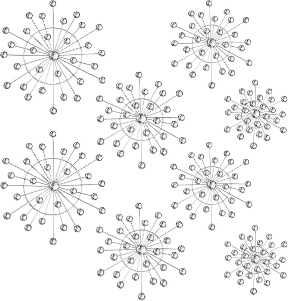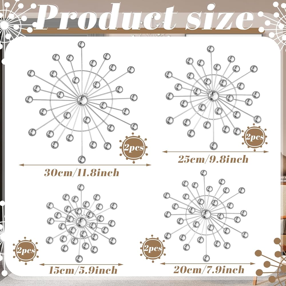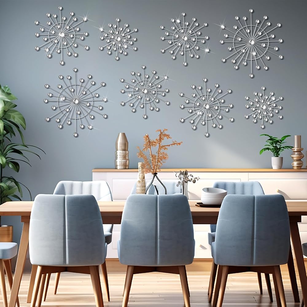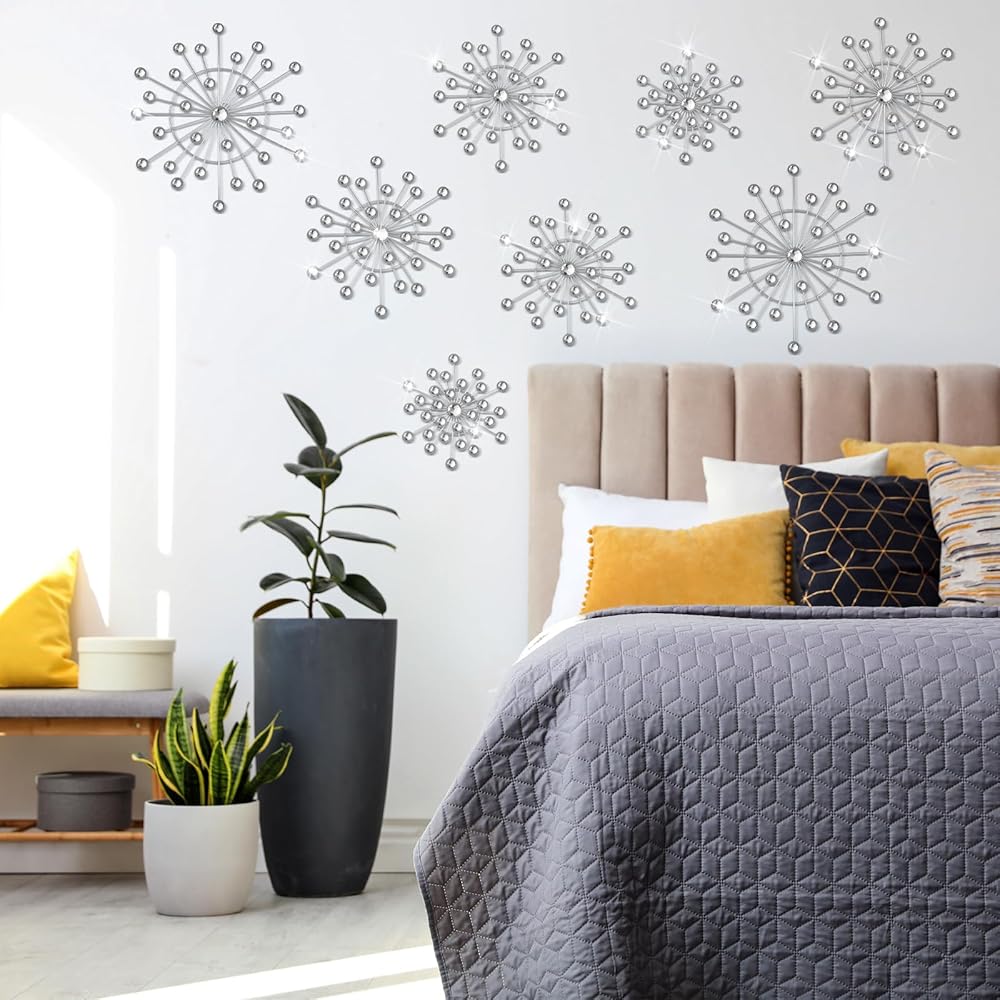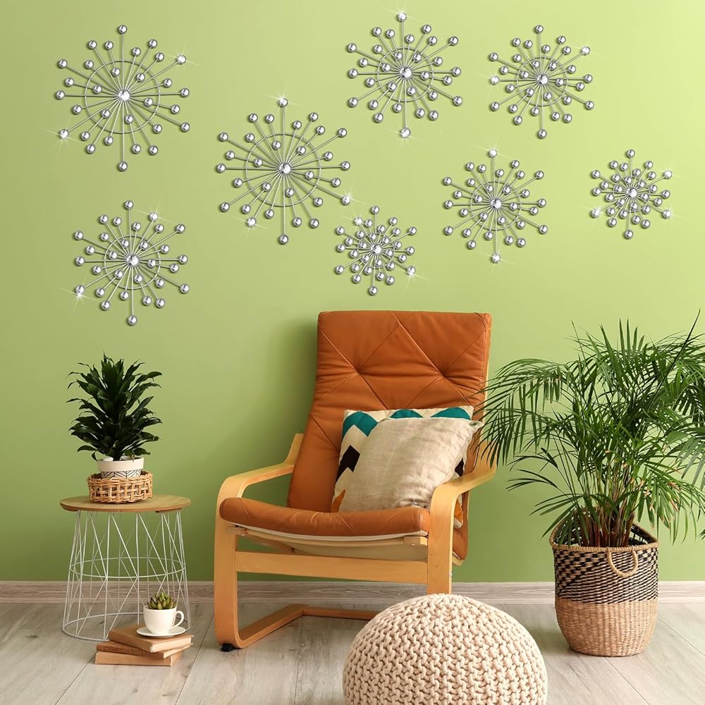 • Silver Artistic Design: you will receive 8 pcs starburst wall decor, possesses a vintage silver enamel coating with a stylish, artistic starburst design; Its silver color adds a luxurious touch to rooms, effortlessly attracting eyes and generating compliments; The trendy starburst design not only upgrades your space style but also showcases your taste
