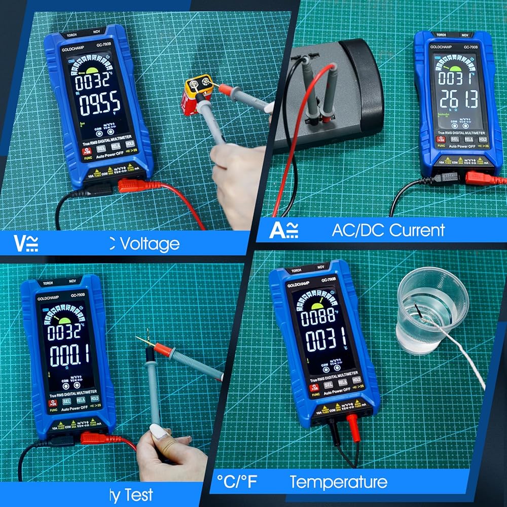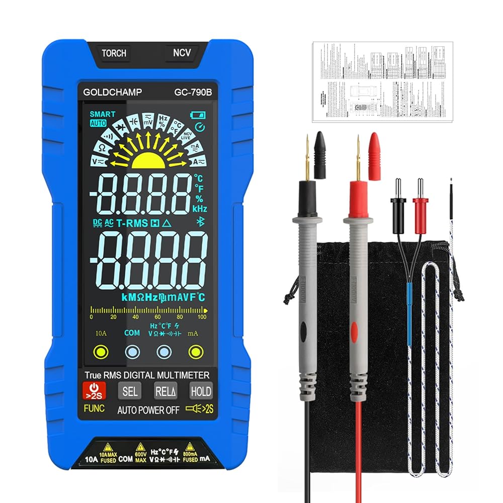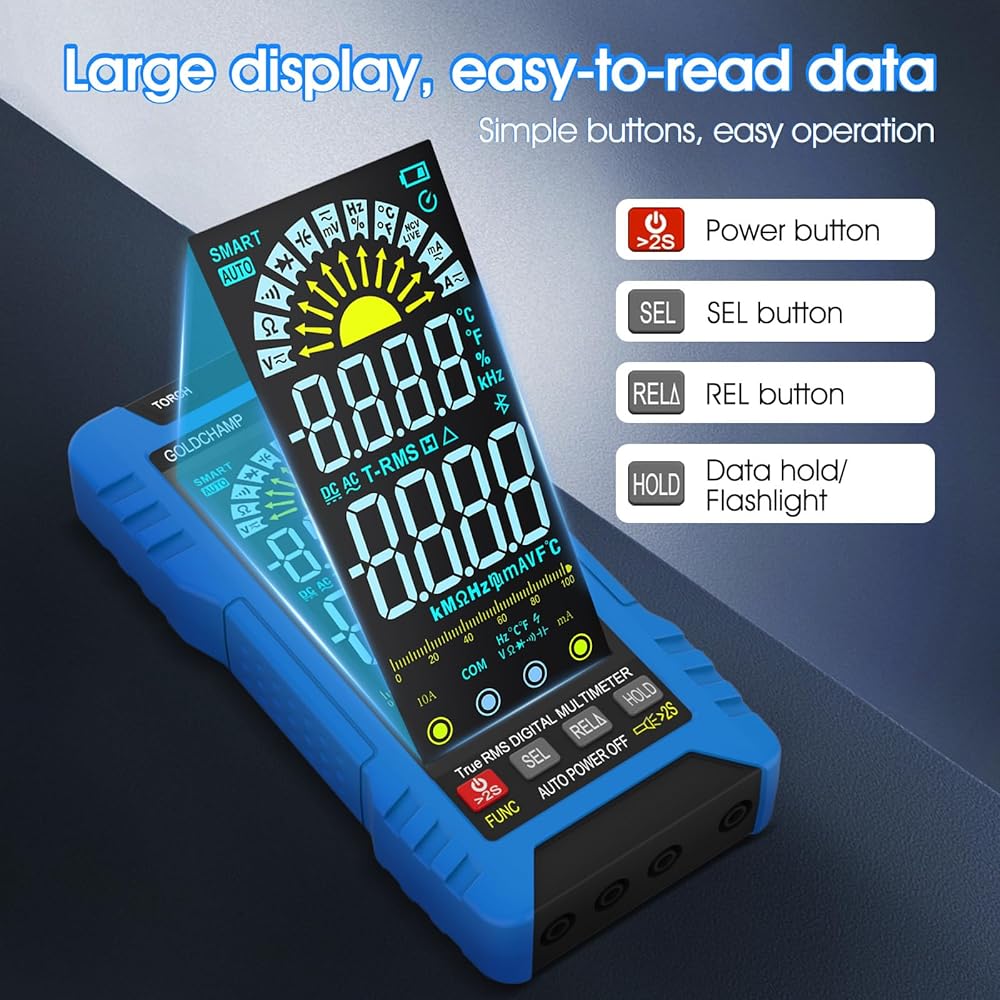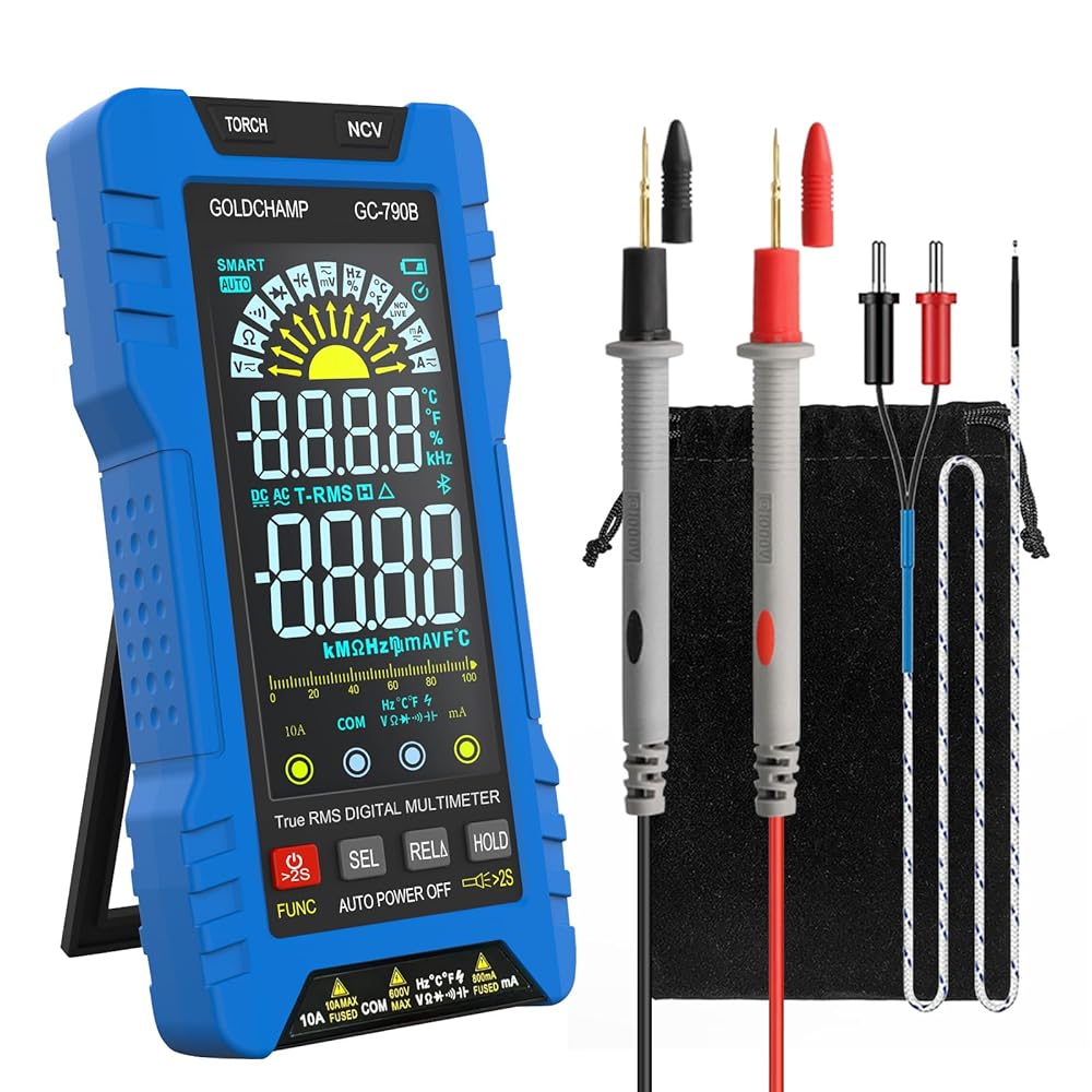 جهاز قياس رقمي متعدد TRMS 6000 عدد، مقياس الفولتميتر التلقائي مع NCV، يقيس جهد التيار المتردد/التيار المستمر، المقاومة، السعة، درجة الحرارة، الصمام الثنائي، التردد/دورة العمل للسيارات والمنزل