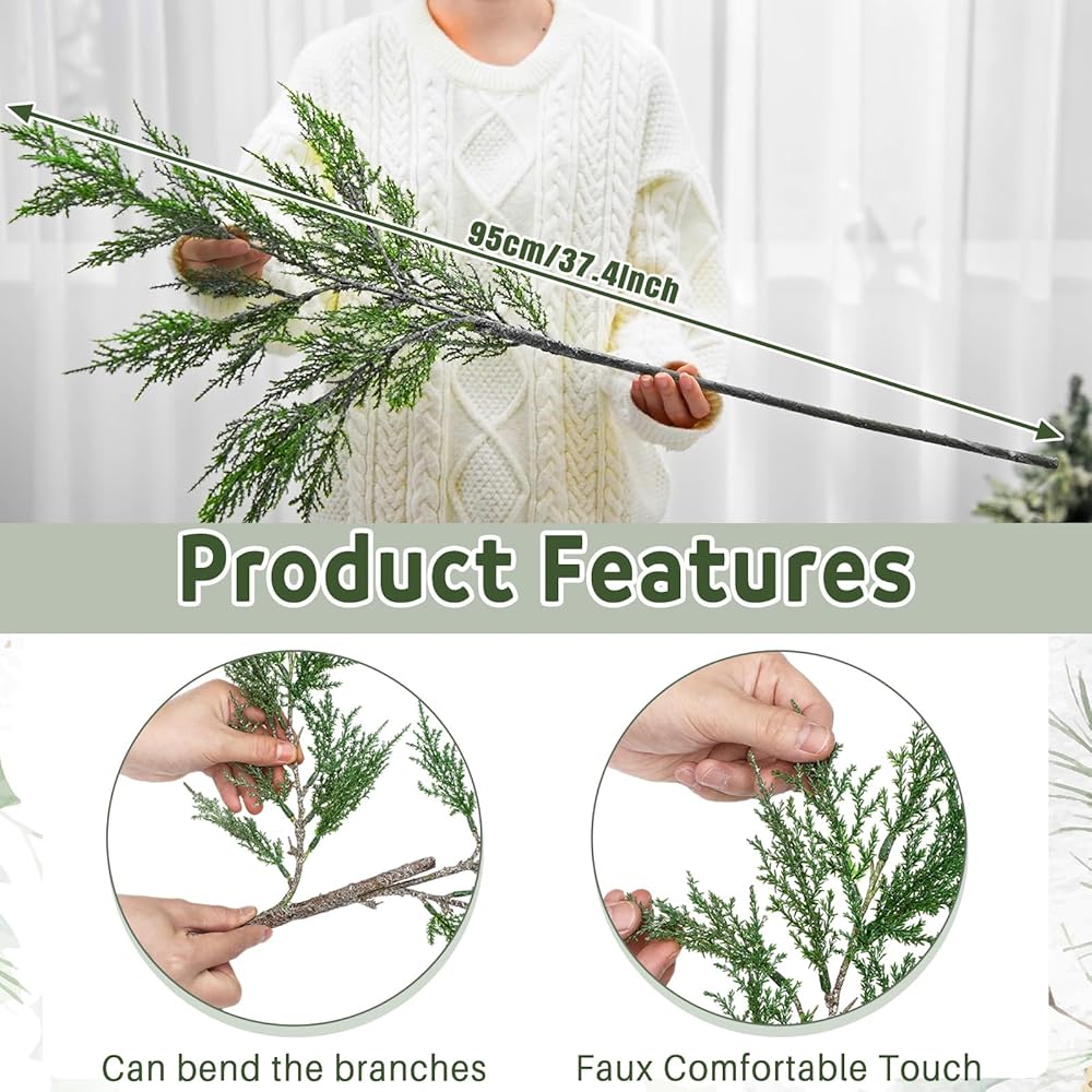 Wide Range of Uses: these pine stems are suitable for Xmas centerpieces, tabletop, farmhouse, wedding, and balconies decor; Its realistic leaves complement any winter decorations, and it can also serve as a nice gifts or prop for photography enthusiasts