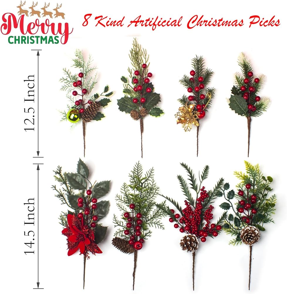 Versatile Decoration: Our 8Pack Artificial Christmas Picks are perfect for adding a festive touch to your holiday décor, whether you're decorating a wreath, garland, or centerpiece.