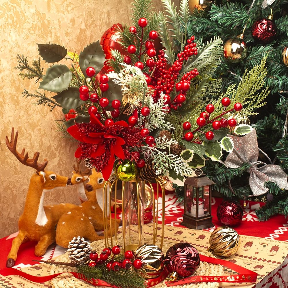 Durable and Realistic: Made from high-quality materials, these artificial Christmas picks maintain their vibrant colors and realistic textures, making them an excellent choice for long-lasting holiday decorations.