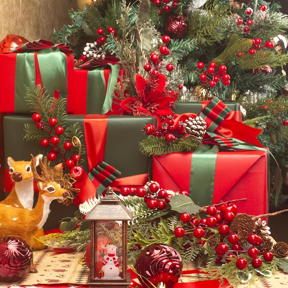 Vibrant Assortment: Each pack includes assorted red berry picks stems, faux pine picks spray, and delightful accents like pinecones, apples, and holly leaves, ensuring a stunning variety for your creative projects.