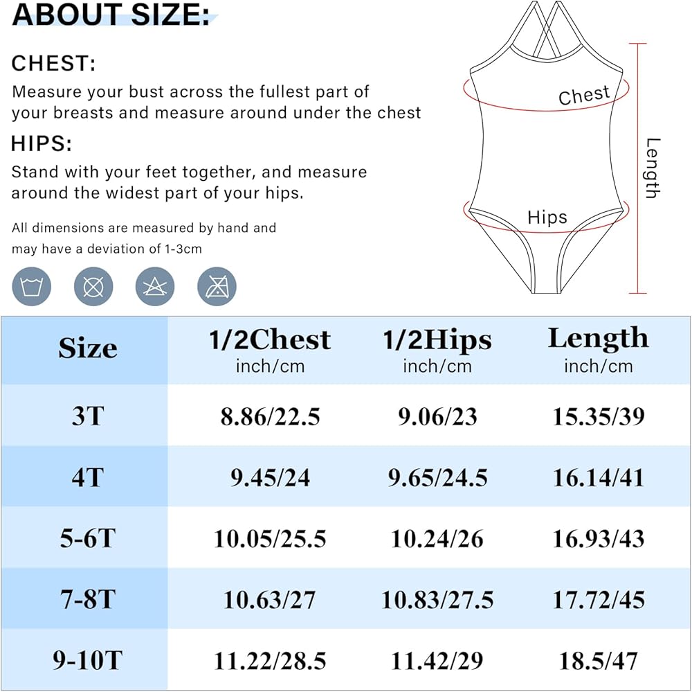 [Size Information]: There are 5 sizes for you to choose. 3T/4T/5-6T/7-8T/9-10T. The kids beach bathing suits are suitable for kids from 3 to 10 years old.