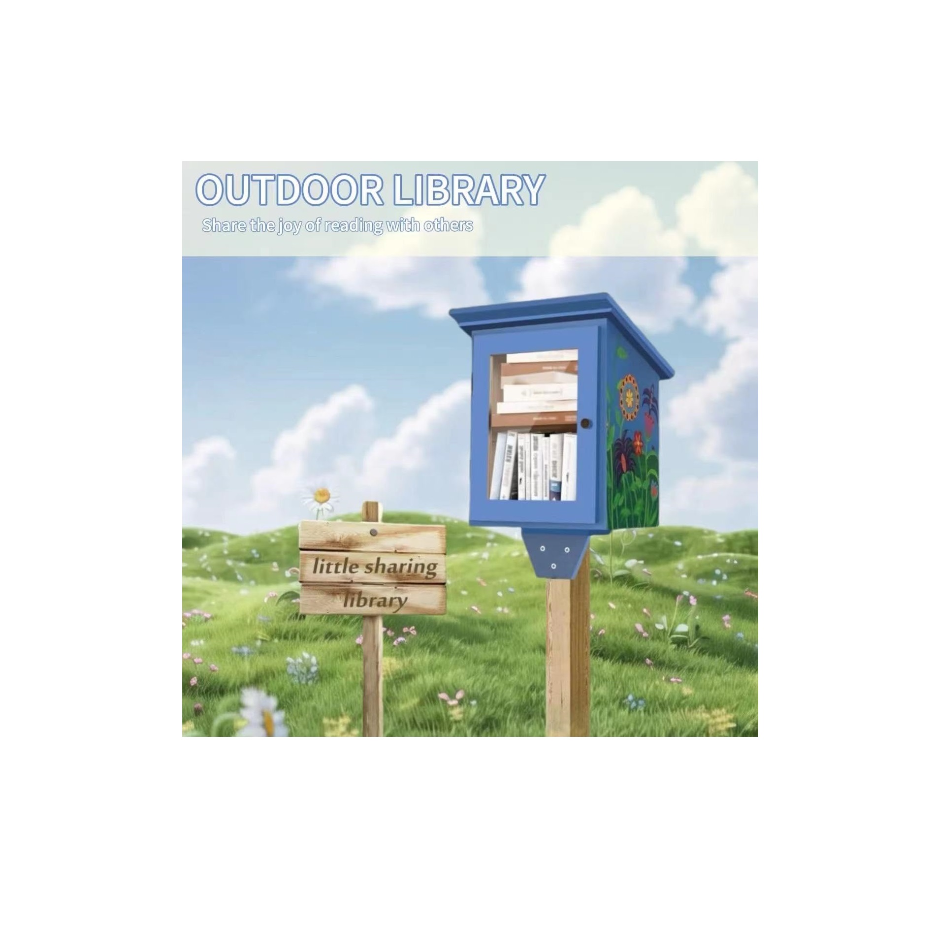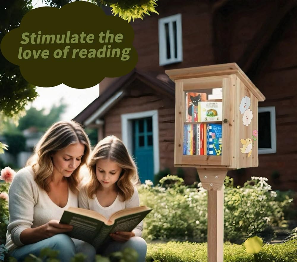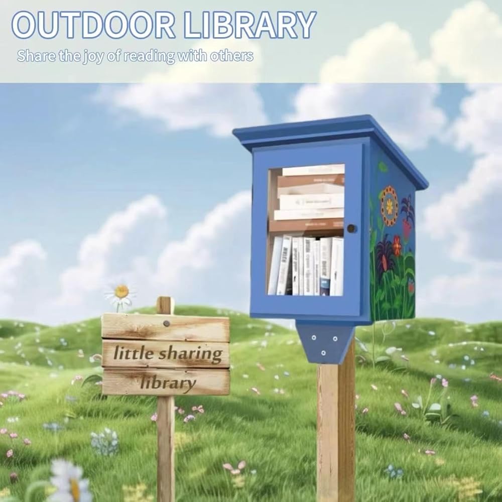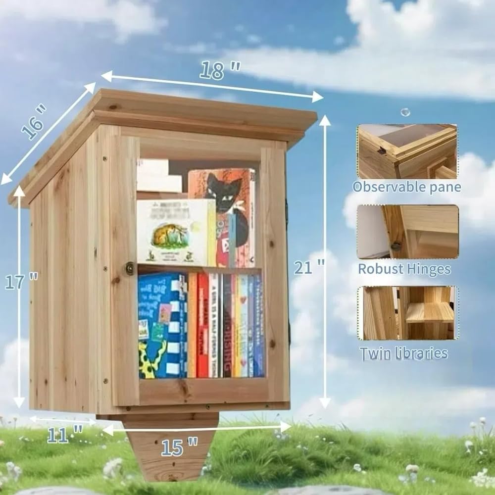 صندوق مكتبة خارجي بالحجم الكامل - خزانة كتب خشبية طبيعية لتبادل الأدب للأطفال، طلاء DIY للمجتمع