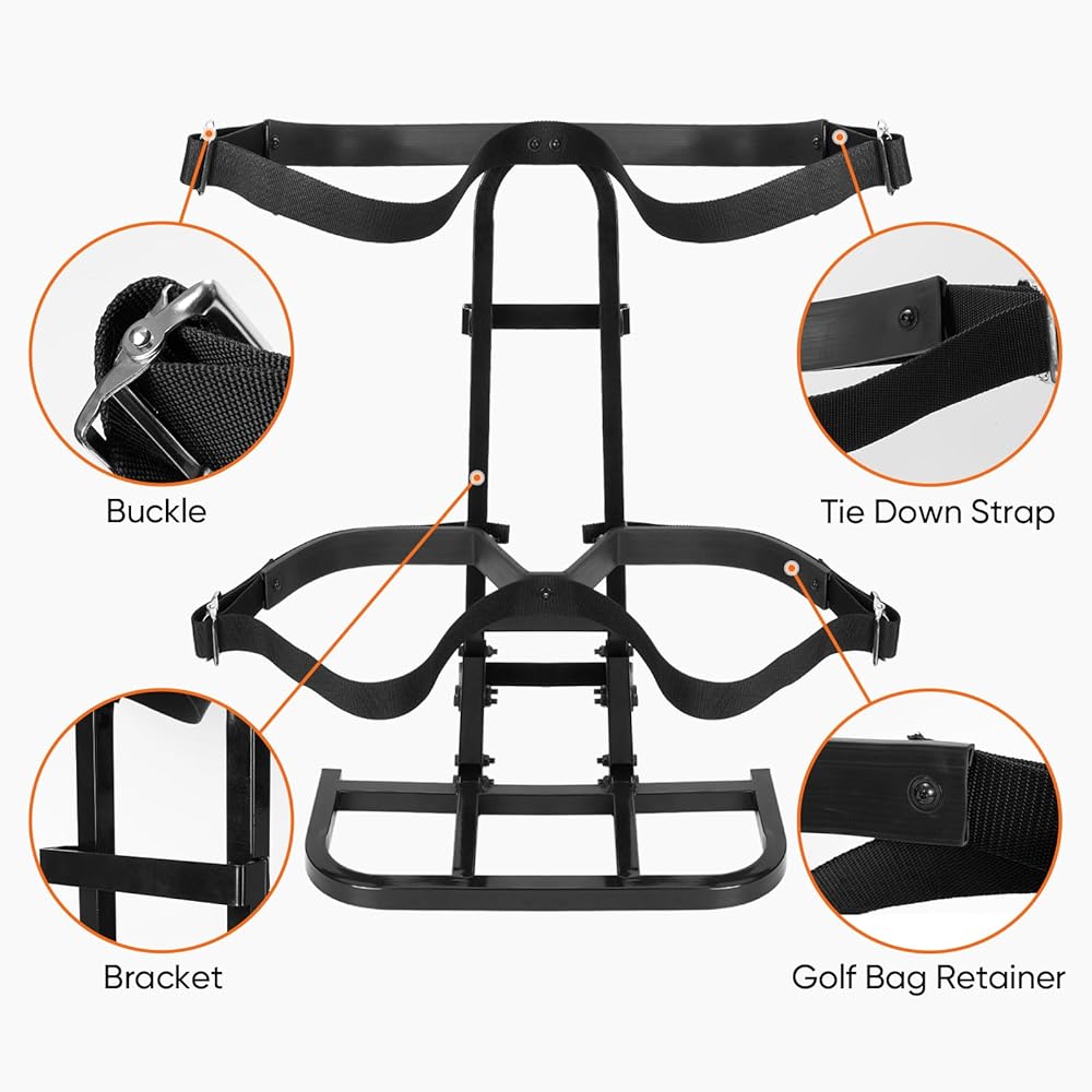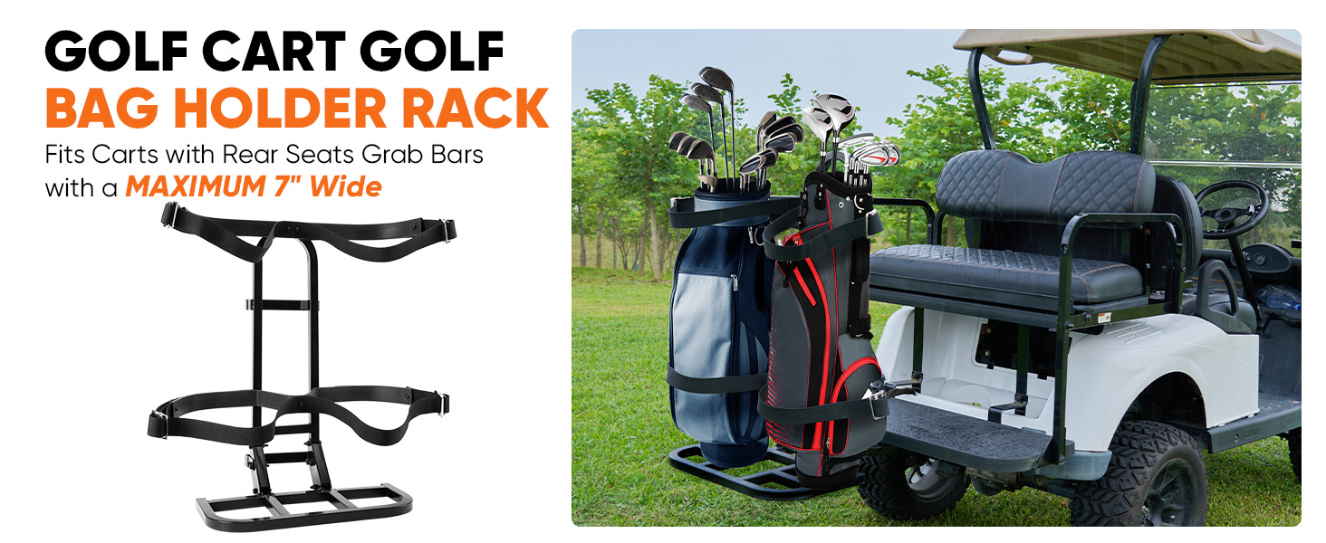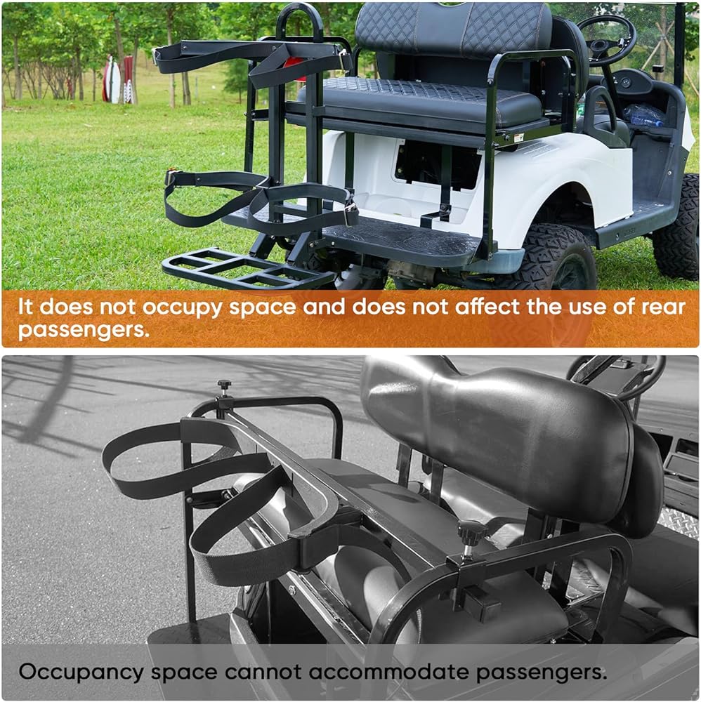 توافق عالمي: يتوافق حامل حقيبة عربة الجولف هذا مع معظم موديلات Yamaha وClub Car وEZGO. طالما أن عربة الجولف الخاصة بك تحتوي على شريط أمان خلفي بعرض أقصى يبلغ 7 بوصات، فإن حامل الحقيبة هذا سيكون مناسبًا تمامًا.