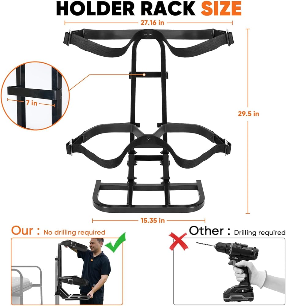 سهلة التركيب: لا حاجة للحفر! تعليمات التثبيت متضمنة، مما يجعل من السهل تجميع حامل حقيبة الجولف وتعليقه على شريط الإمساك الآمن.