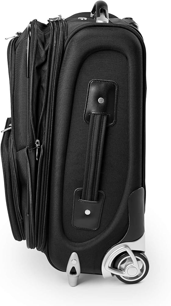 EXCEPTIONAL MANEUVERABILITY: Corner mounted wheels for upright rolling for added convenience and telescoping aluminum handle system adjusts at the push of a button pulling and pushing the luggage effortlessly