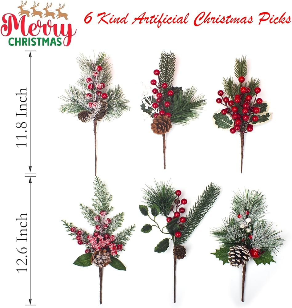 Perfect Gift Idea: Delight your friends and family with our 6 Kinds Artificial Christmas Picks, a thoughtful gift for anyone who loves to decorate for the holidays and create memorable seasonal settings.