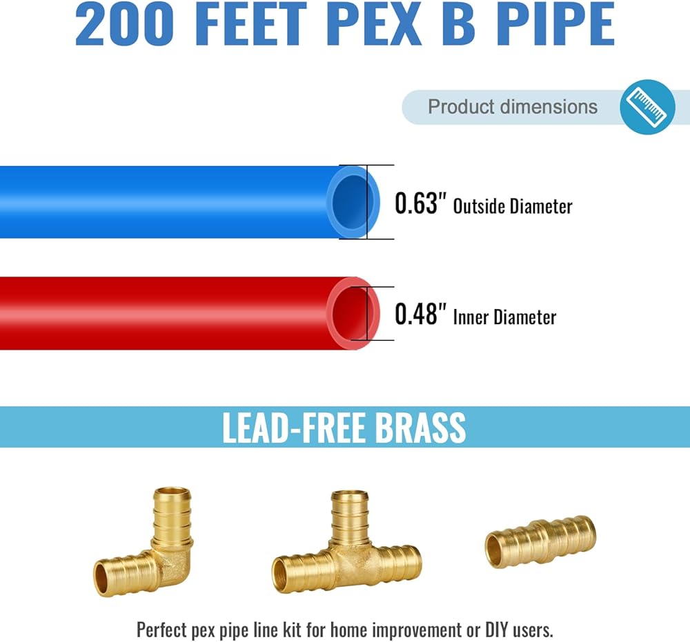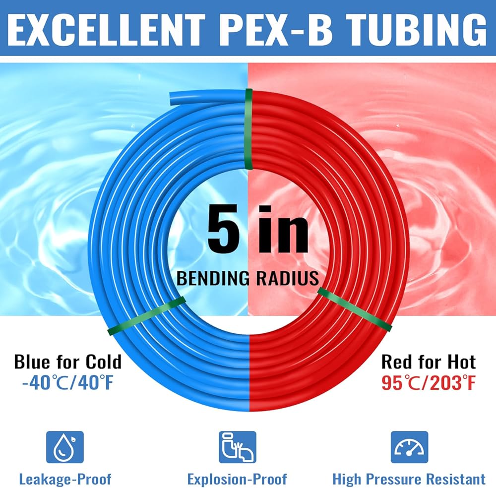 【مادة فاخرة】لفتان من أنابيب Pex-B المدمجة بطول 100 قدم، مما يقلل من نقاط التسرب المحتملة. تتميز أنابيب Pex-b بقدرة عالية على المقاومة للتشقق والتسرب والتآكل ودرجات الحرارة المنخفضة أو المرتفعة. تضمن المرونة والمرونة الفائقة سهولة الانحناء، والتي يمكن تكييفها مع ظروف الأرض المختلفة. تركيبات Pex النحاسية الممتازة الخالية من الرصاص آمنة ولها عمر خدمة طويل.