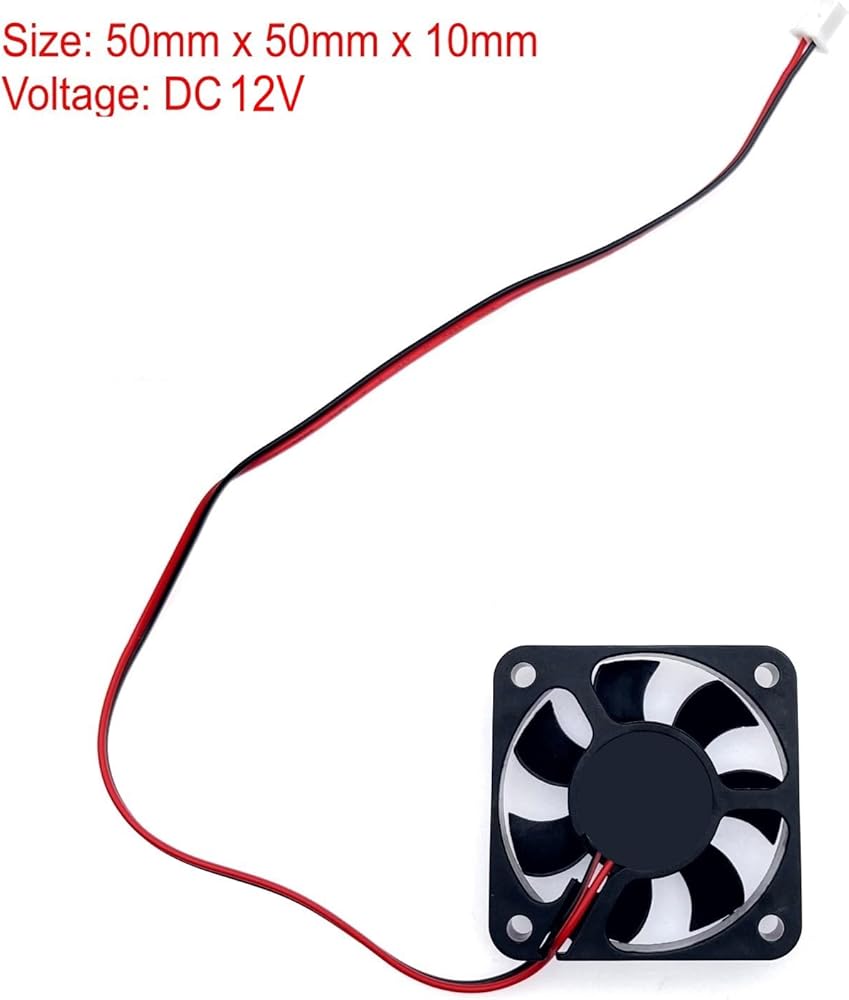 • Size: 50mm x 50mm x 10mm. Voltage: DC 12V. Material: PBT plastic fan frame and blades . This 5010 dc 12v silent mini brushless cooling fan is Low-noise, low-vibration, reliable running.