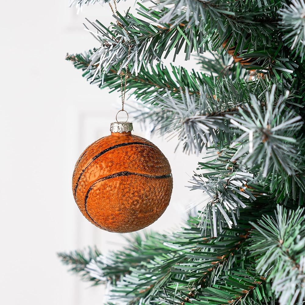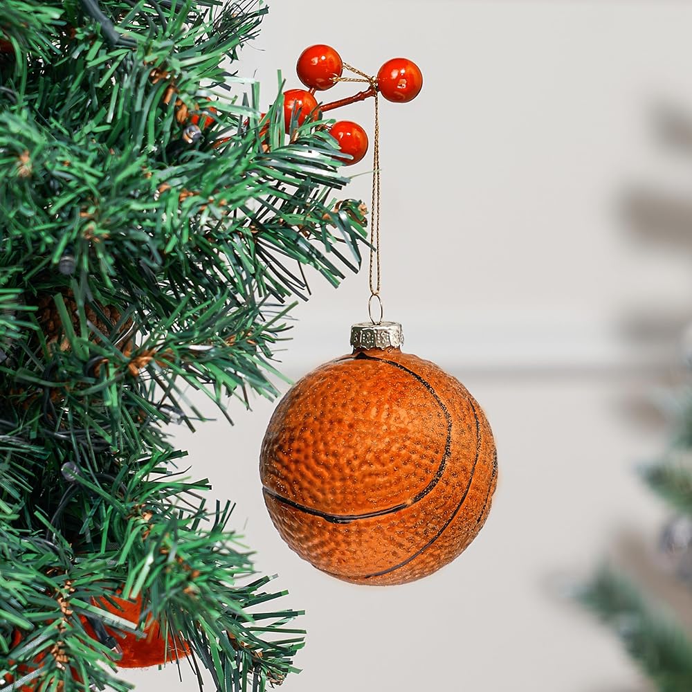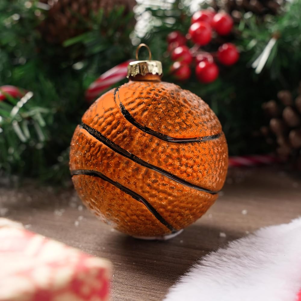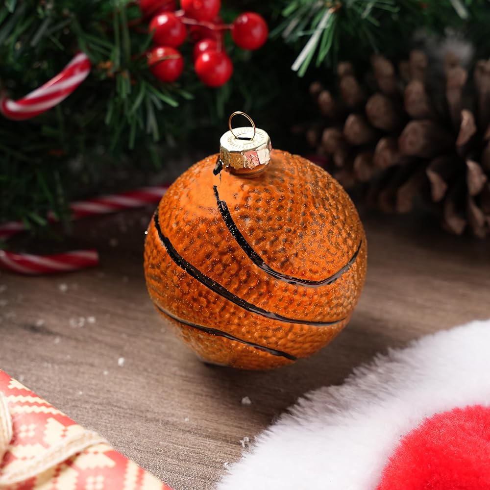 joiedomi عيد الميلاد كرة السلة زخرفة الزجاج، الكرة الرياضية الزجاج في مهب زخرفة الكرة لتزيين شجرة عيد الميلاد، الأولاد زخرفة رياضية لعيد الميلاد هدية عطلة حزب صالح الديكور الداخلي