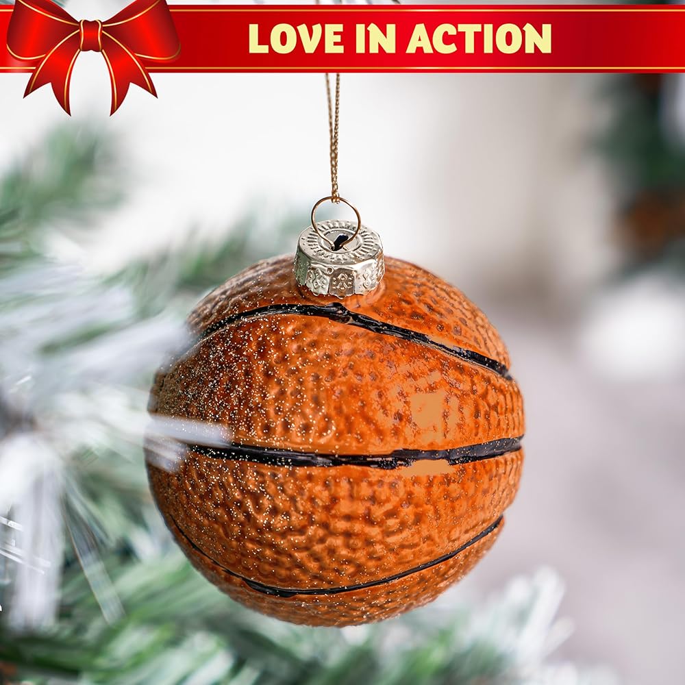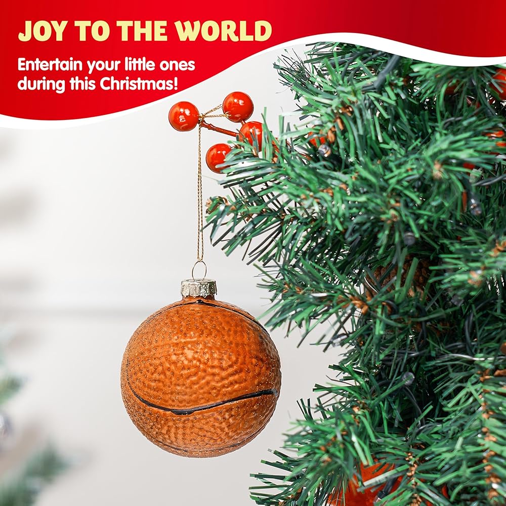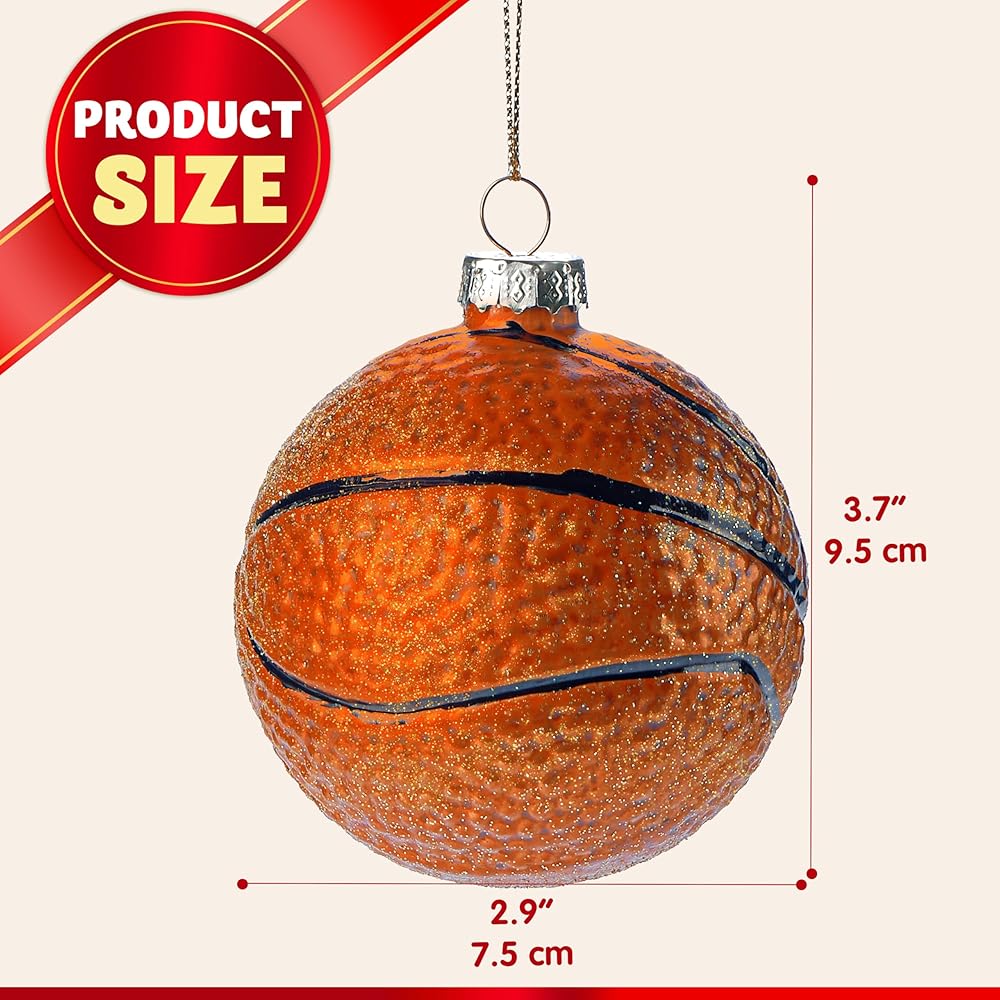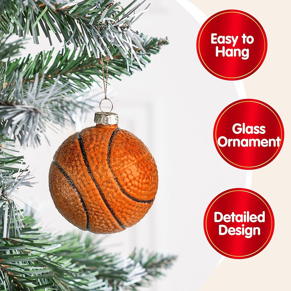 joiedomi عيد الميلاد كرة السلة زخرفة الزجاج، الكرة الرياضية الزجاج في مهب زخرفة الكرة لتزيين شجرة عيد الميلاد، الأولاد زخرفة رياضية لعيد الميلاد هدية عطلة حزب صالح الديكور الداخلي