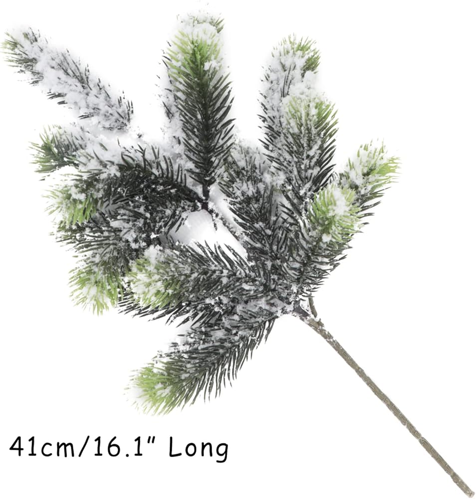 4PCS Large Artificial Pine Branches Long Frosted Pine Picks Snowy White Greenery Stems Christmas Tree Picks Faux Evergreen Pine Spray for Crafts Wreath Garland Wedding Holiday Winter Home Decor 16" Tall